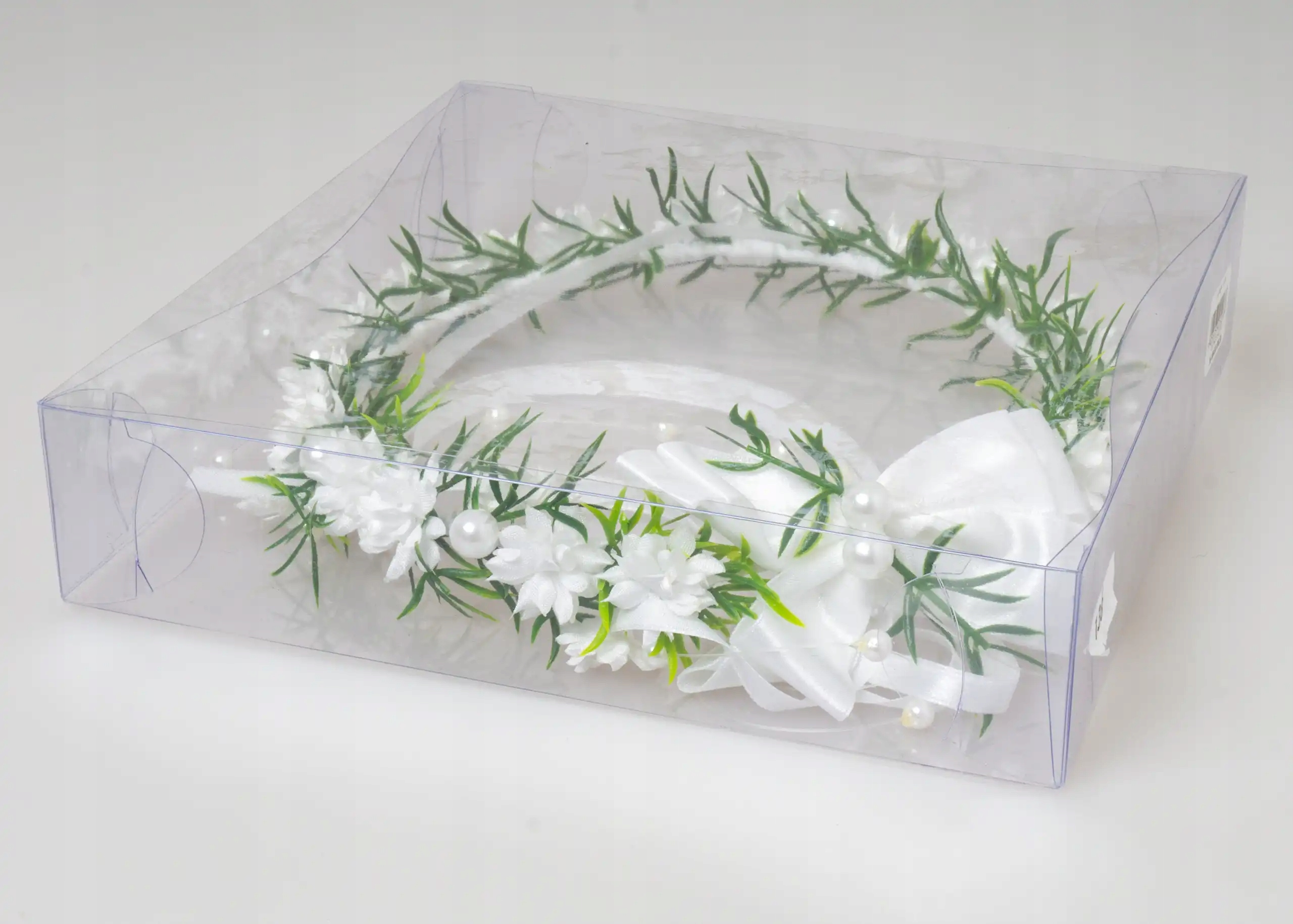 Очаровательный акцент торжества – причастный венок с искусственными белыми цветами