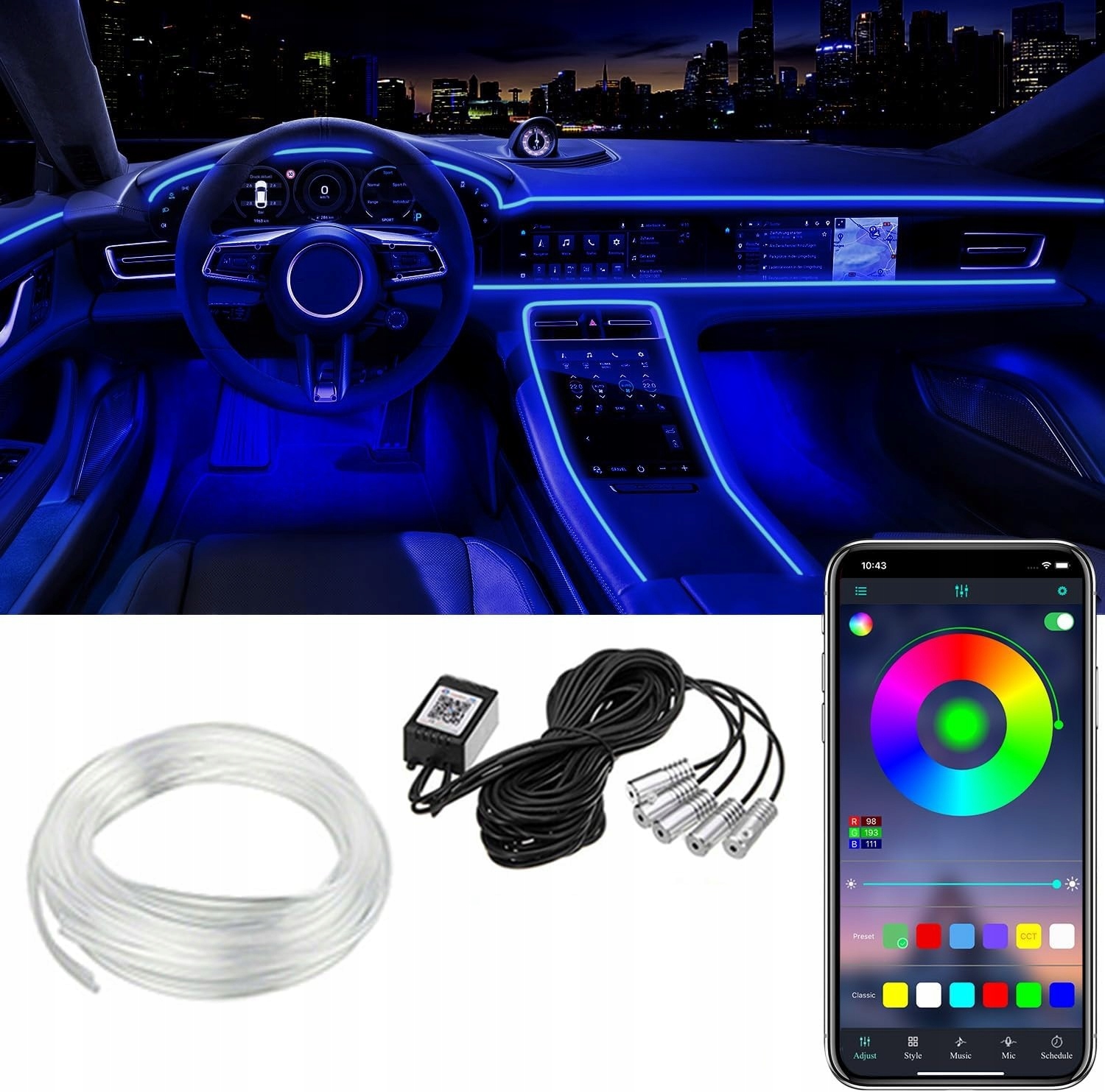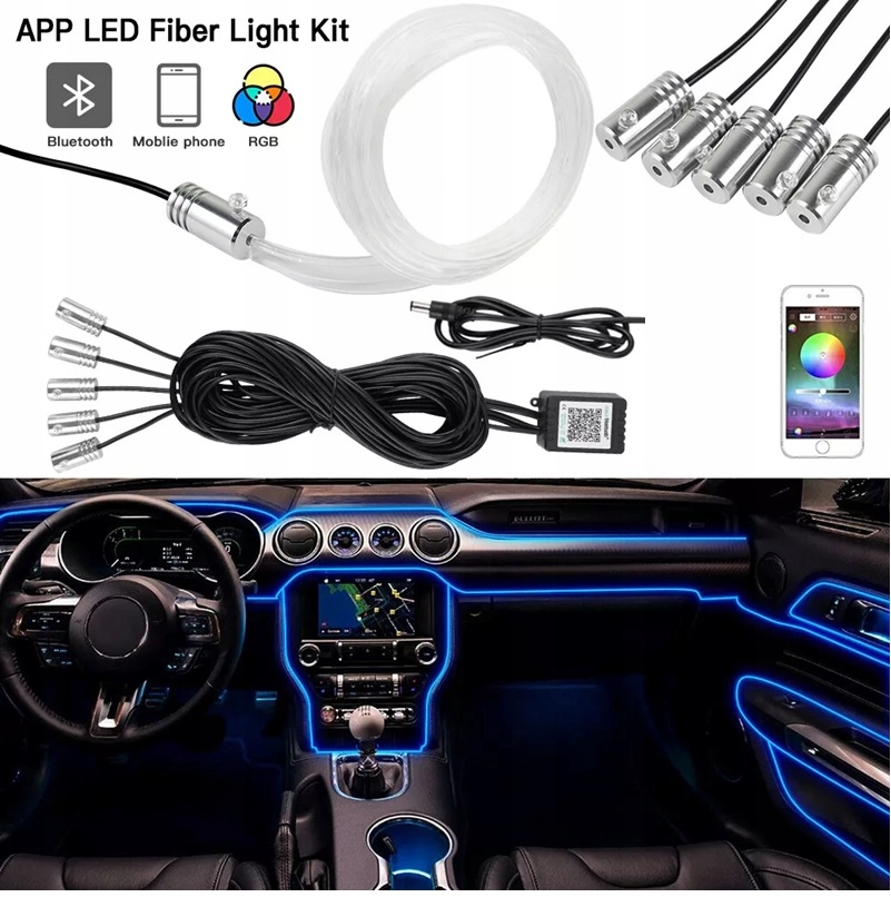 ВНУТРЕННЕЕ ОСВЕЩЕНИЕ LED RGB NEON 6x ВОЛОКОННО-ОПТИЧЕСКОЕ 600см APP