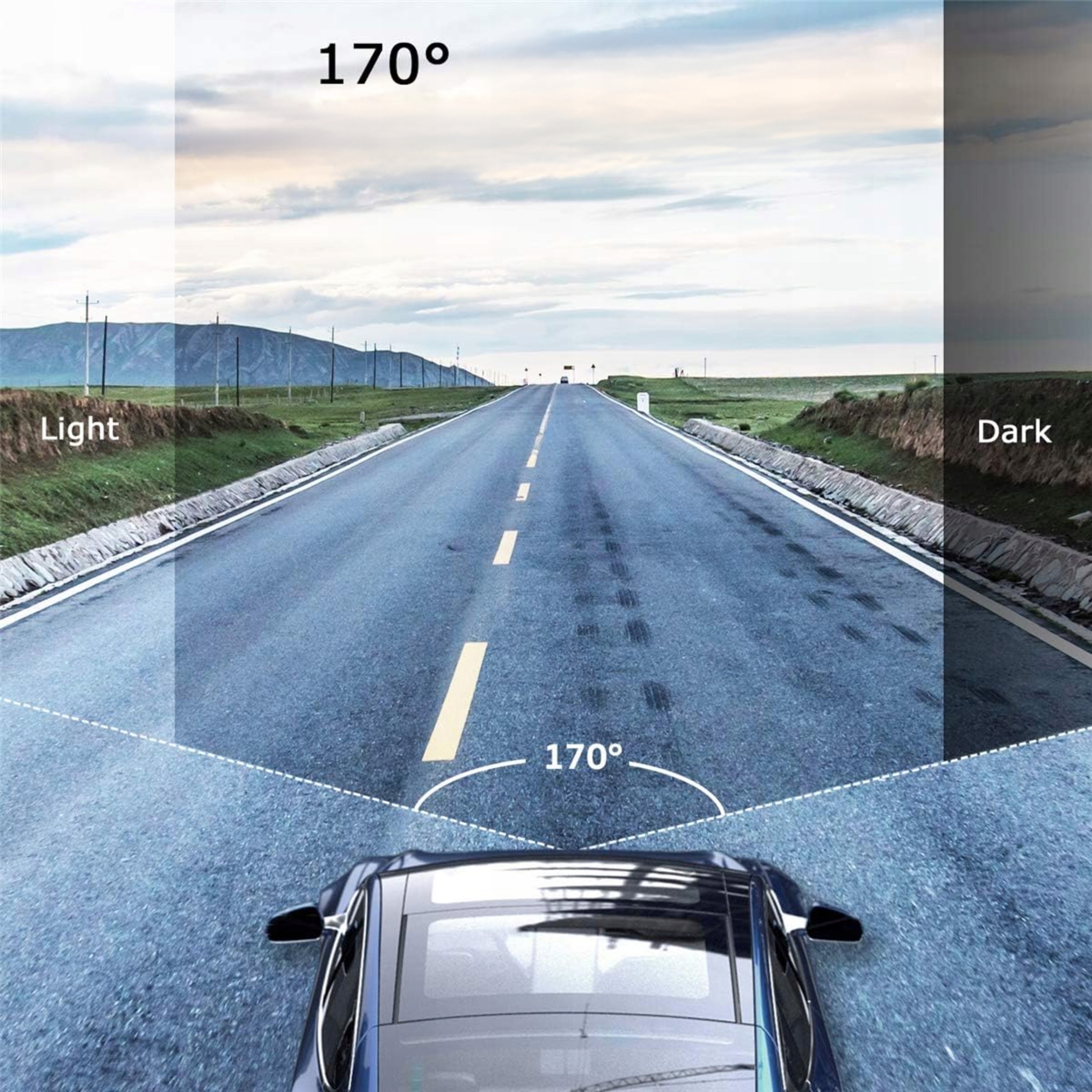 Эта мини-компактная автомобильная камера не загораживает обзор. Он оснащен широкоугольной фронтальной камерой 170° с разрешением 1080P и водонепроницаемой задней камерой HD 720P, которая снимает изображения с трех полос дороги.