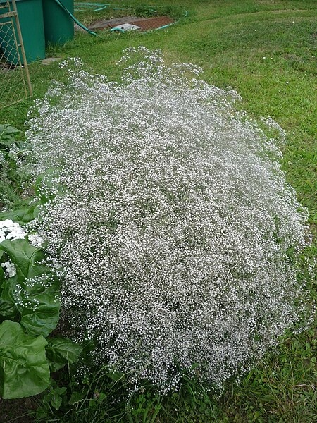Декоративное растение, выращенное в садах для разрезанного цветка и используемого в букете для украшения букетов, венков и т. Д. С 2014 года, растение, покрытое видами в Польше, и помещенное в красный список в категории подходящей категории. Белые или розоватые цветы маленькие и собираются в широкой метелке с очень разными ветвями. Он цветет с июня по сентябрь, одно растение производит около 1000 цветов. Листья противоположны, затянуты и слиты с основанием. Растение растет до 40-80 см.