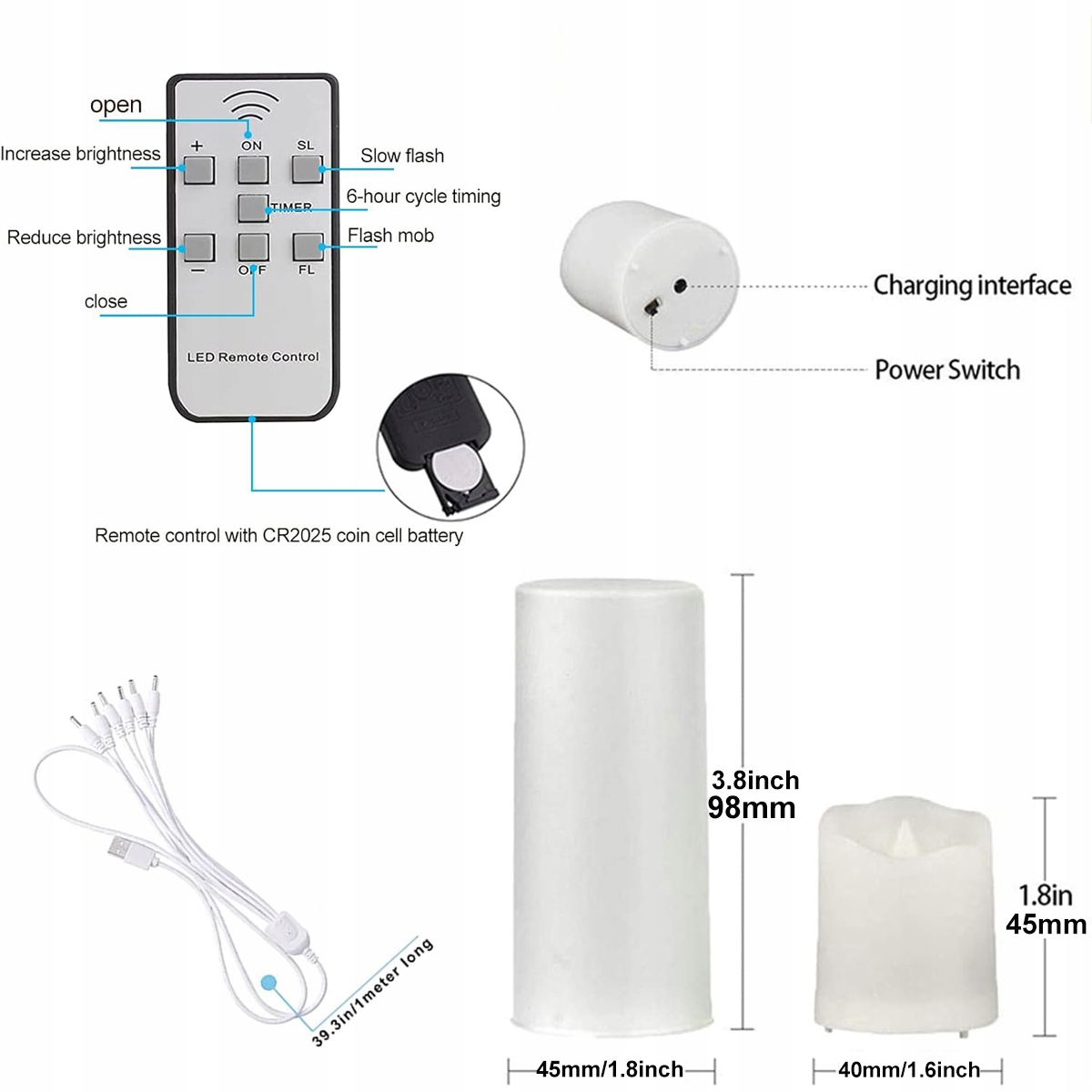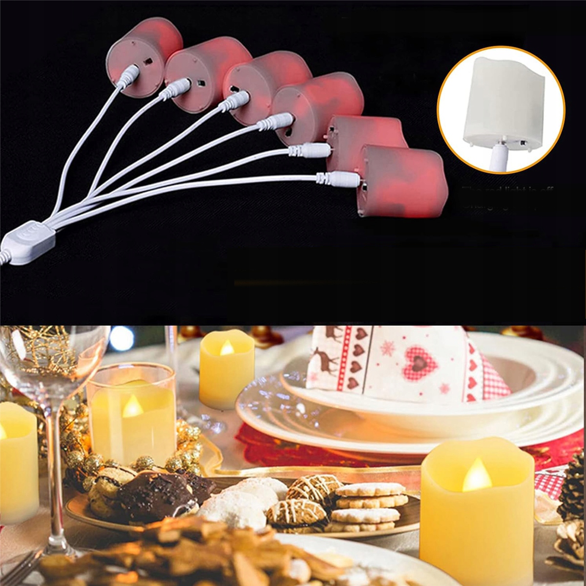 ŚWIECZKA ELEKTRYCZNY WKŁAD DO ZNICZY ŚWIECA LED PŁOMIEŃ USB 6SZT+pilot