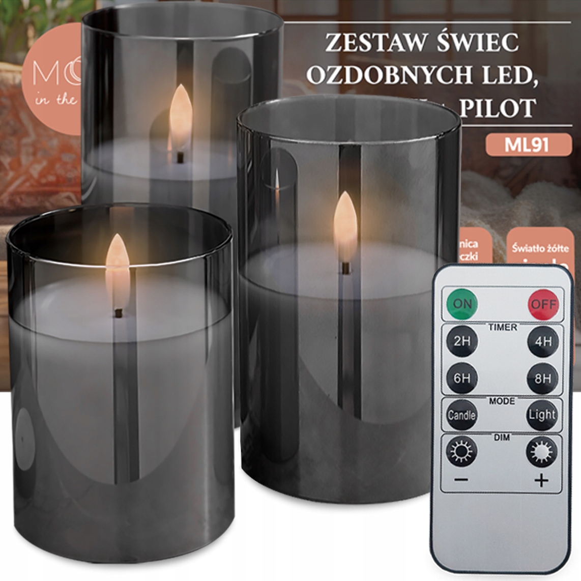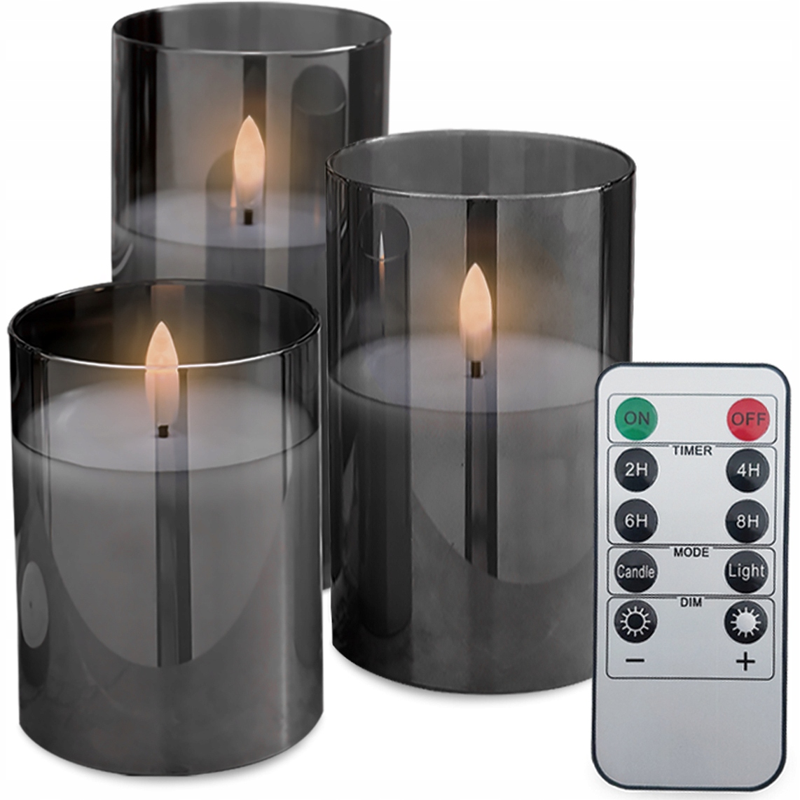 ŚWIECZKI 3 DUŻE OZDOBNE ŚWIECE DEKORACJA ŚWIĄTECZNA LED STEROWANE PILOTEM