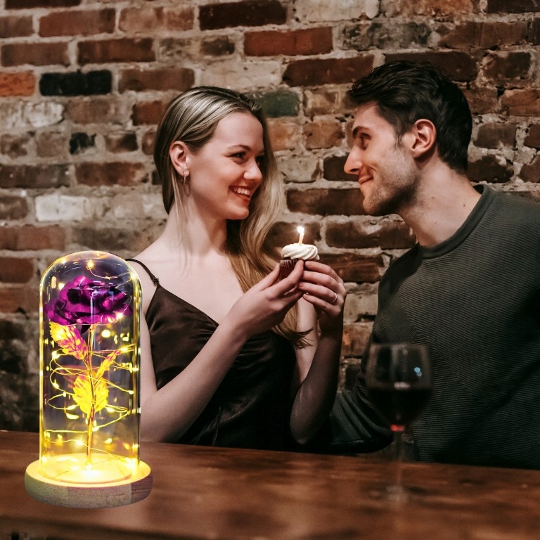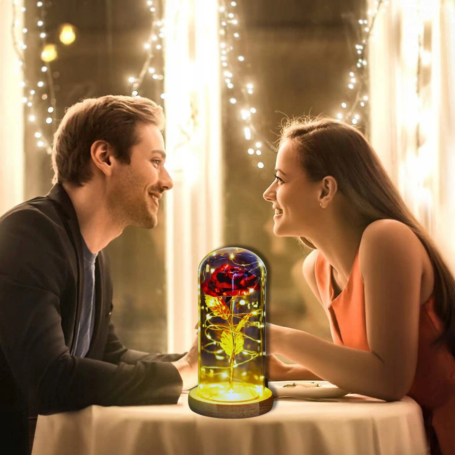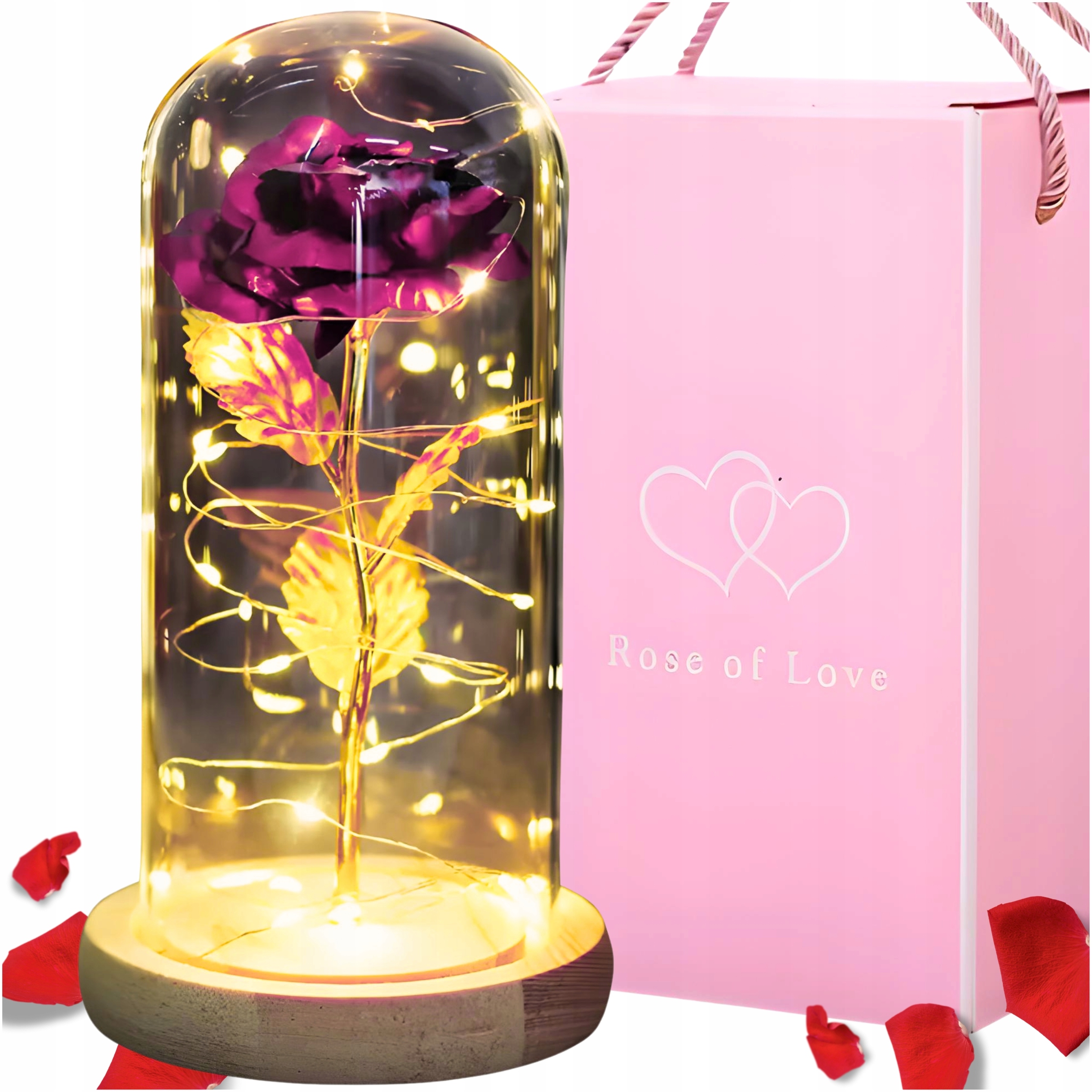 WIECZNA RÓŻA W SZKLE ŚWIECĄCA LAMPA LED PREZENT NA SWIĘTA MIKOŁAJKI CHOINKĘ