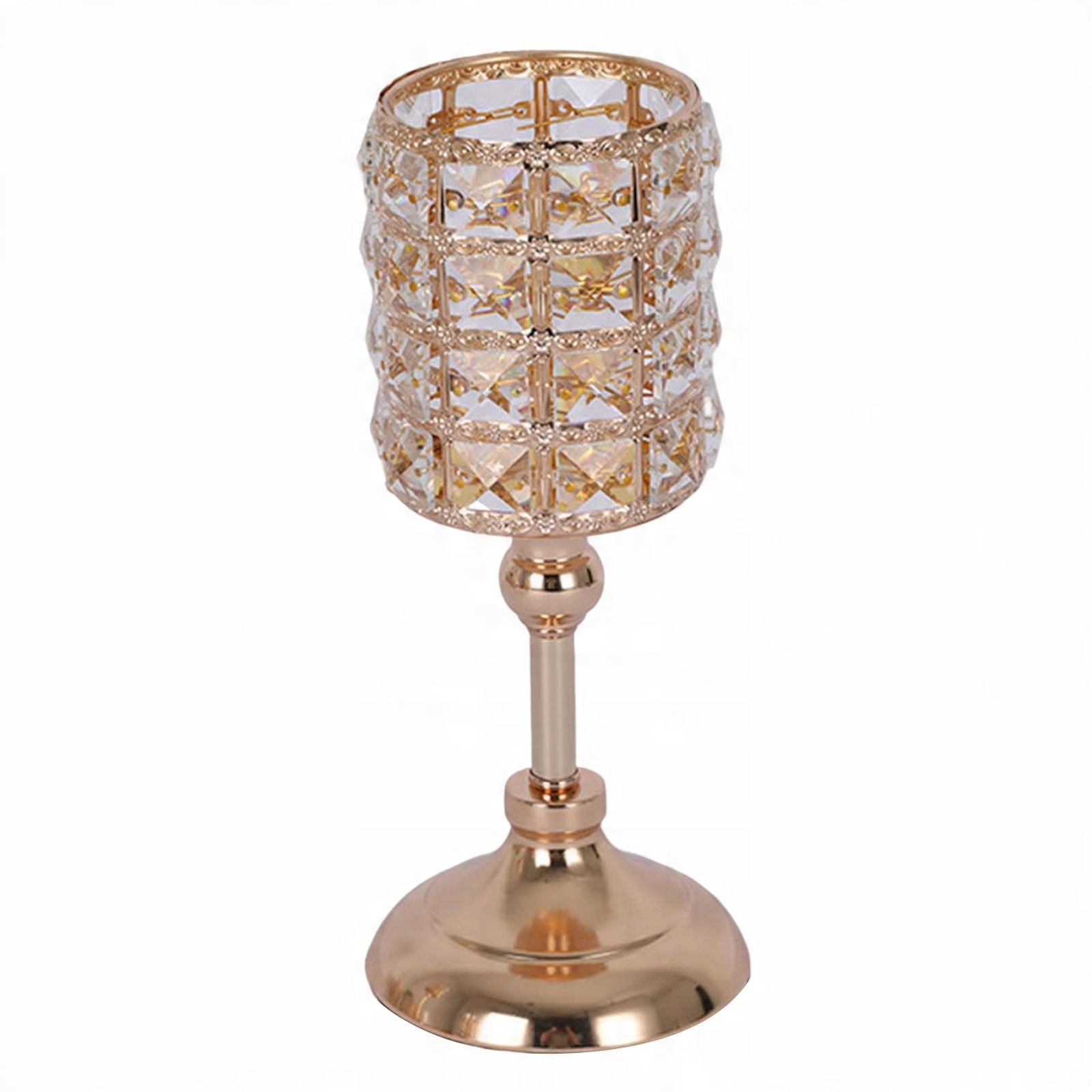 - Вертикальные подсвечники способны придать любому украшению немного изысканности. В красивой конструкции из кристаллической сетки используются высококачественные кристаллы, создающие привлекательный орнамент.