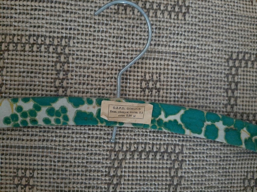 wieszak z czasów PRL - drewno obszyte materiałem - G.Z.P.D. Gorlice sprawny
