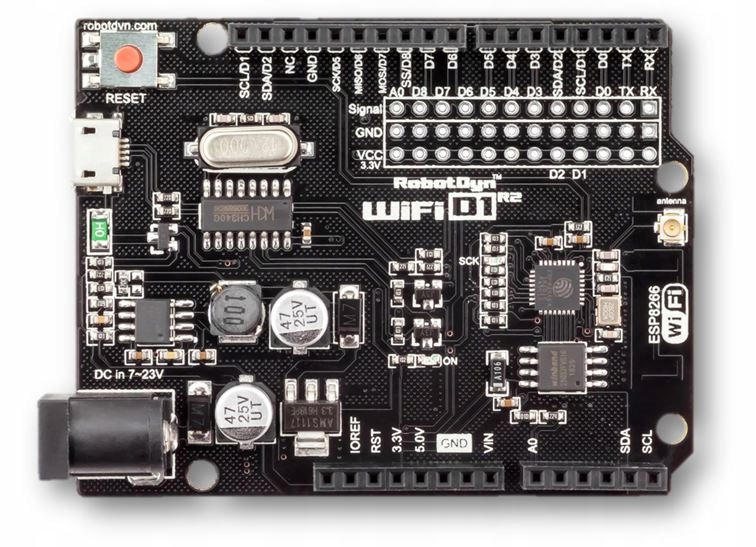 WiFi D1 R2 — плата, конструкция которой основана на системе ESP8266 EX. Предлагаемый модуль полностью совместим с Wemos D1, а кроме того, по сравнению с предшественником, увеличен объем флэш-памяти с 4Мб до 32 Мб.