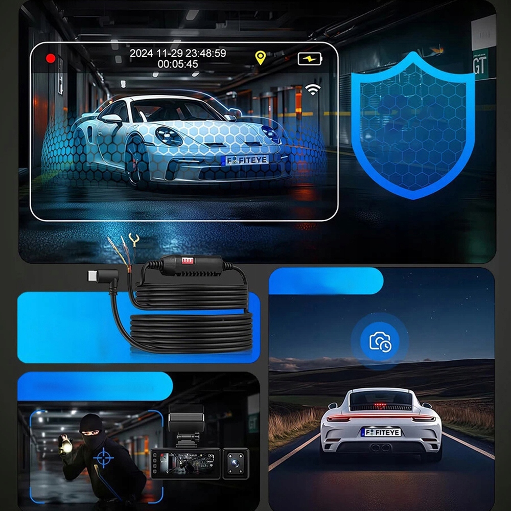 - Круглосуточный мониторинг парковки запускается автоматически при обнаружении столкновения и записывает записи сигналов тревоги. Для этого режима парковки требуется дополнительный комплект проводки ACC (не входит в комплект).