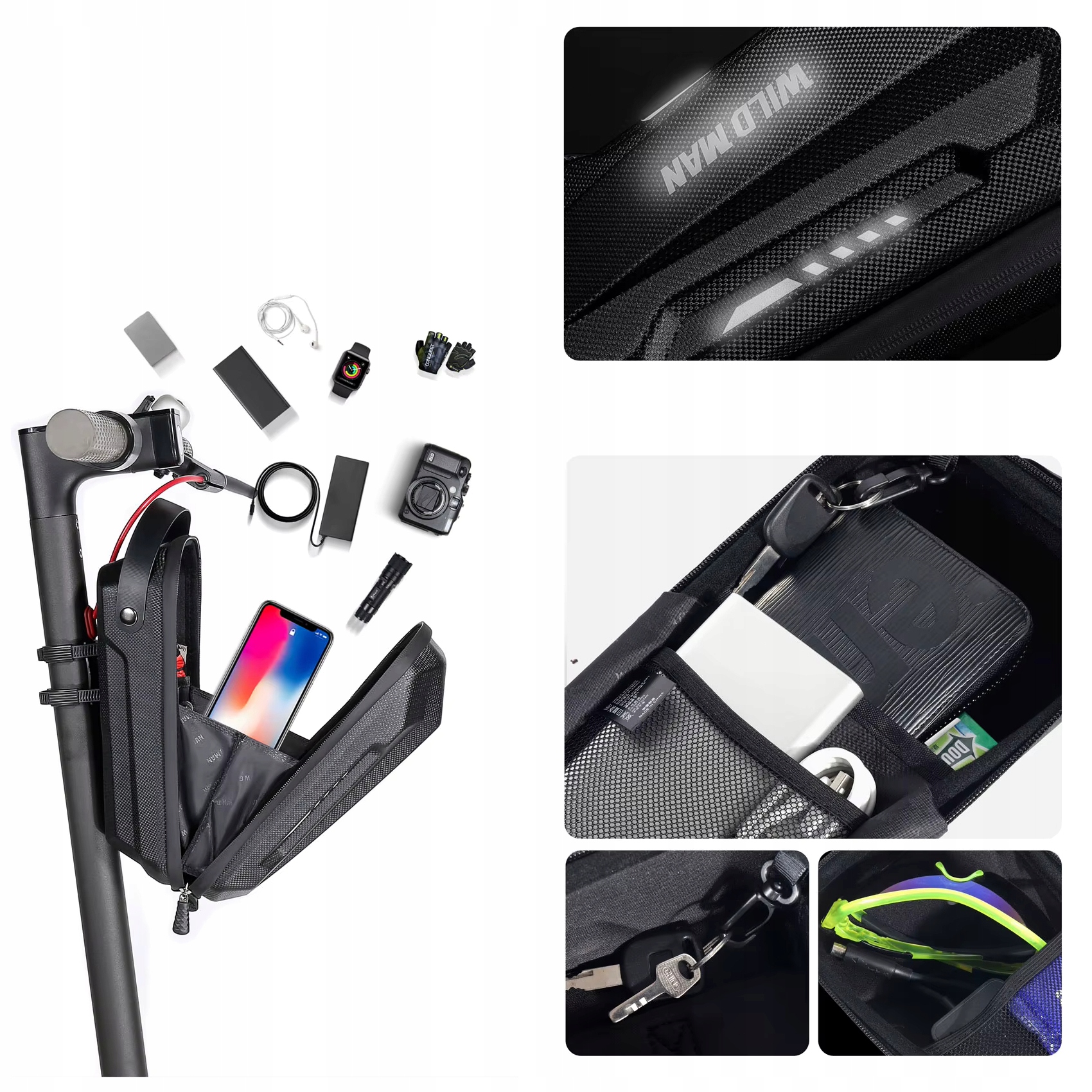 Bag Wildman - идеальное решение для каждого пользователя электрического скутера. Он будет удобно размещать необходимые аксессуары, такие как кошелек, мощный банк, телефон или зарядное устройство .