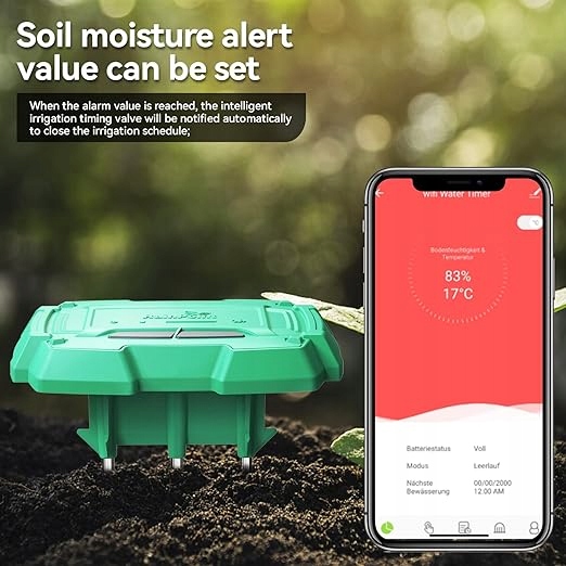 Используйте вместе с таймером RainPoint WiFi для достижения интеллектуального автоматического полива. Это означает, что когда влага в почве иссякнет, таймер прекратит полив. Можете не беспокоиться, что растения будут чрезмерно политы.