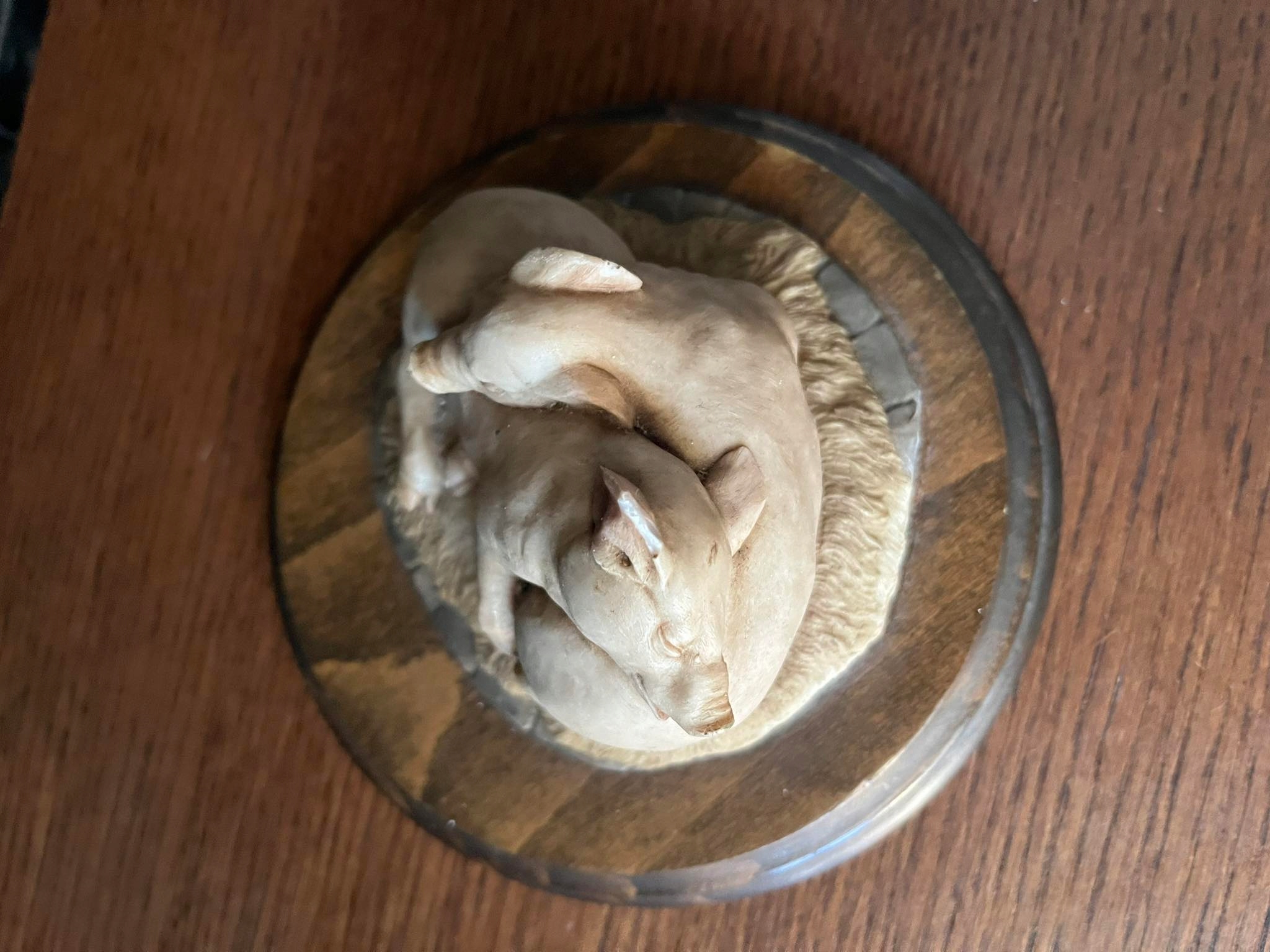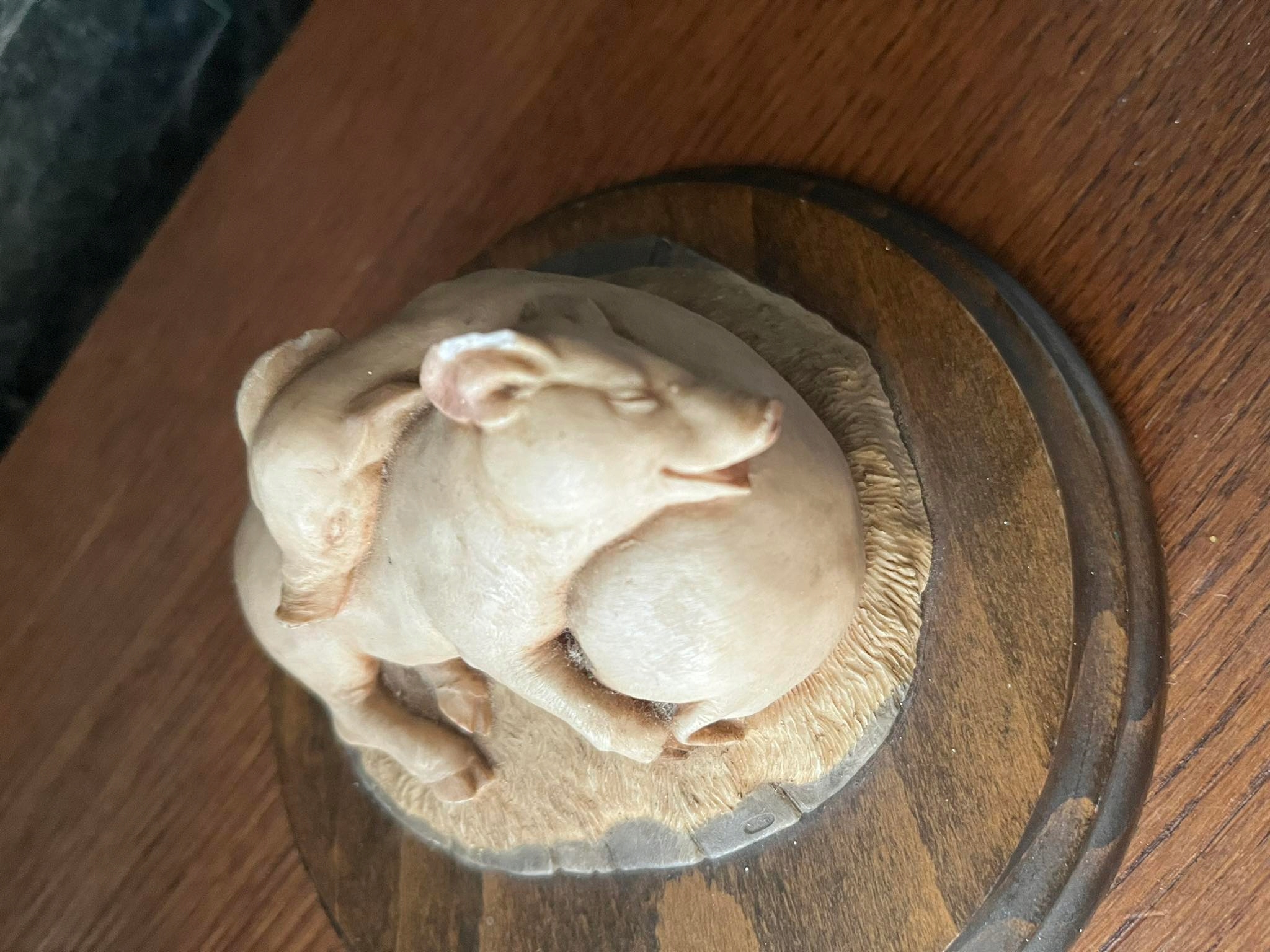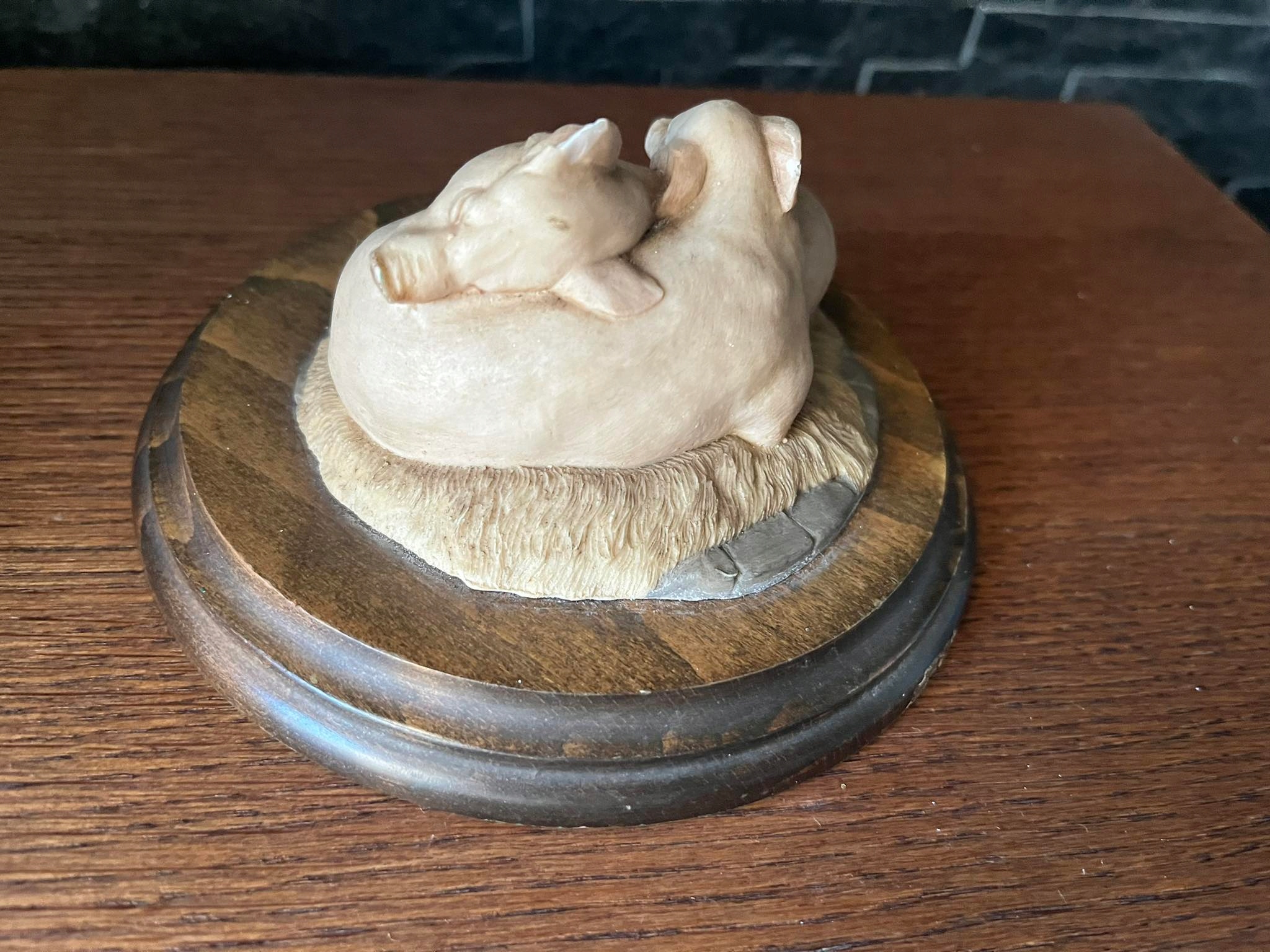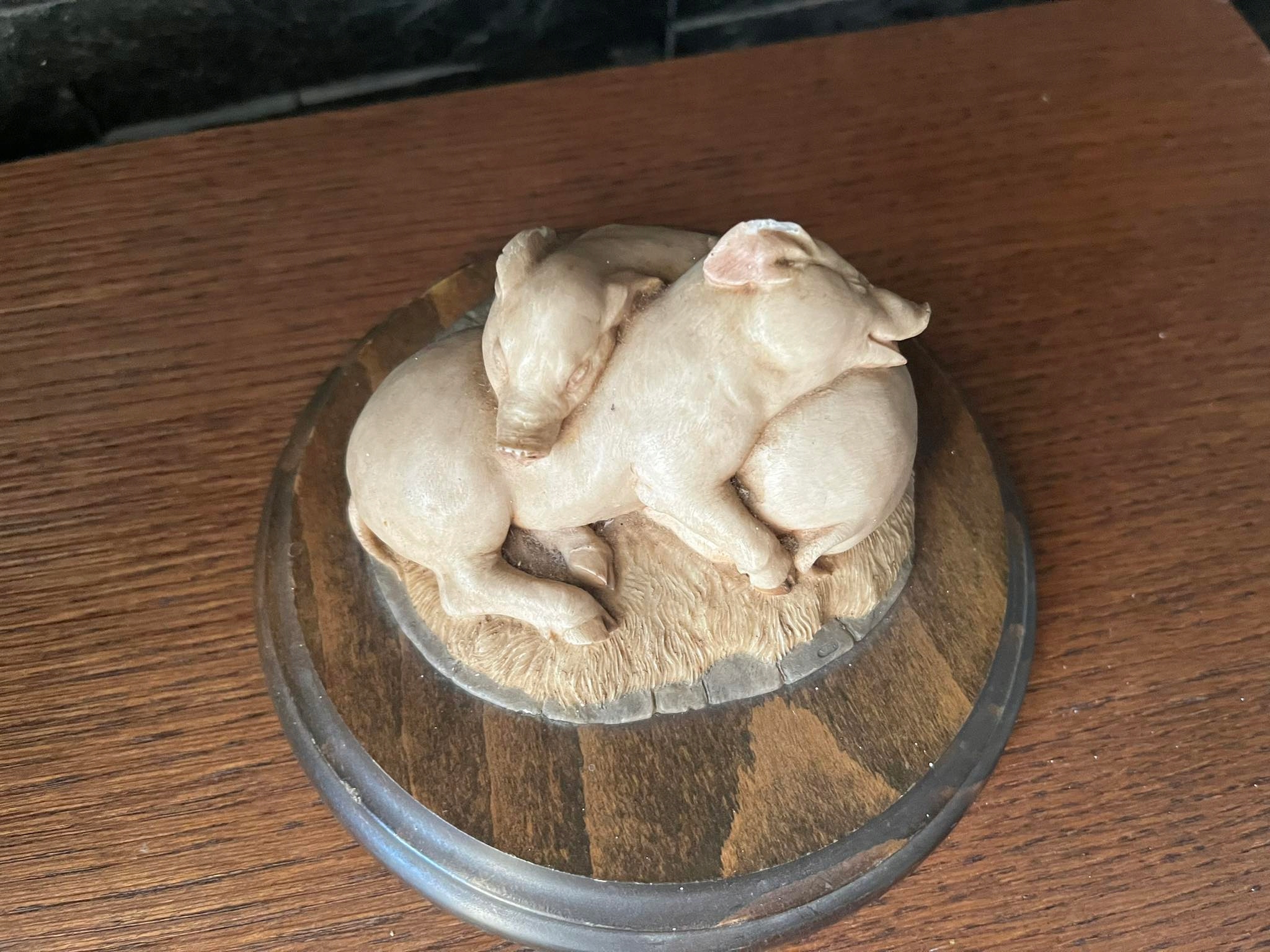 Świnki świnia figurka Country Artist konglomerat na drewnie