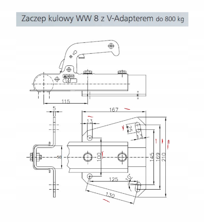 ШАРОВАЯ СЦЕПКА WINTERHOFF 800 кг С СОЕДИНЕНИЕМ ТЯЖЕЛОГО РУЛЯ