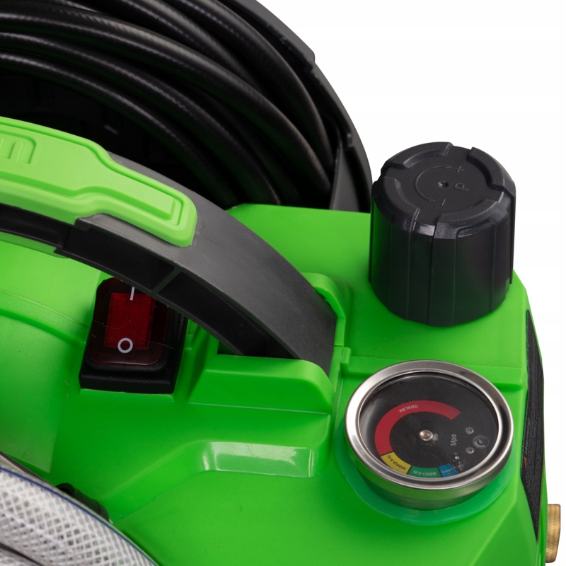 - Регулируемое давление: способность выбирать давление от 6 до 40 бар с простой ручкой обеспечивает универсальность и точность очистки.