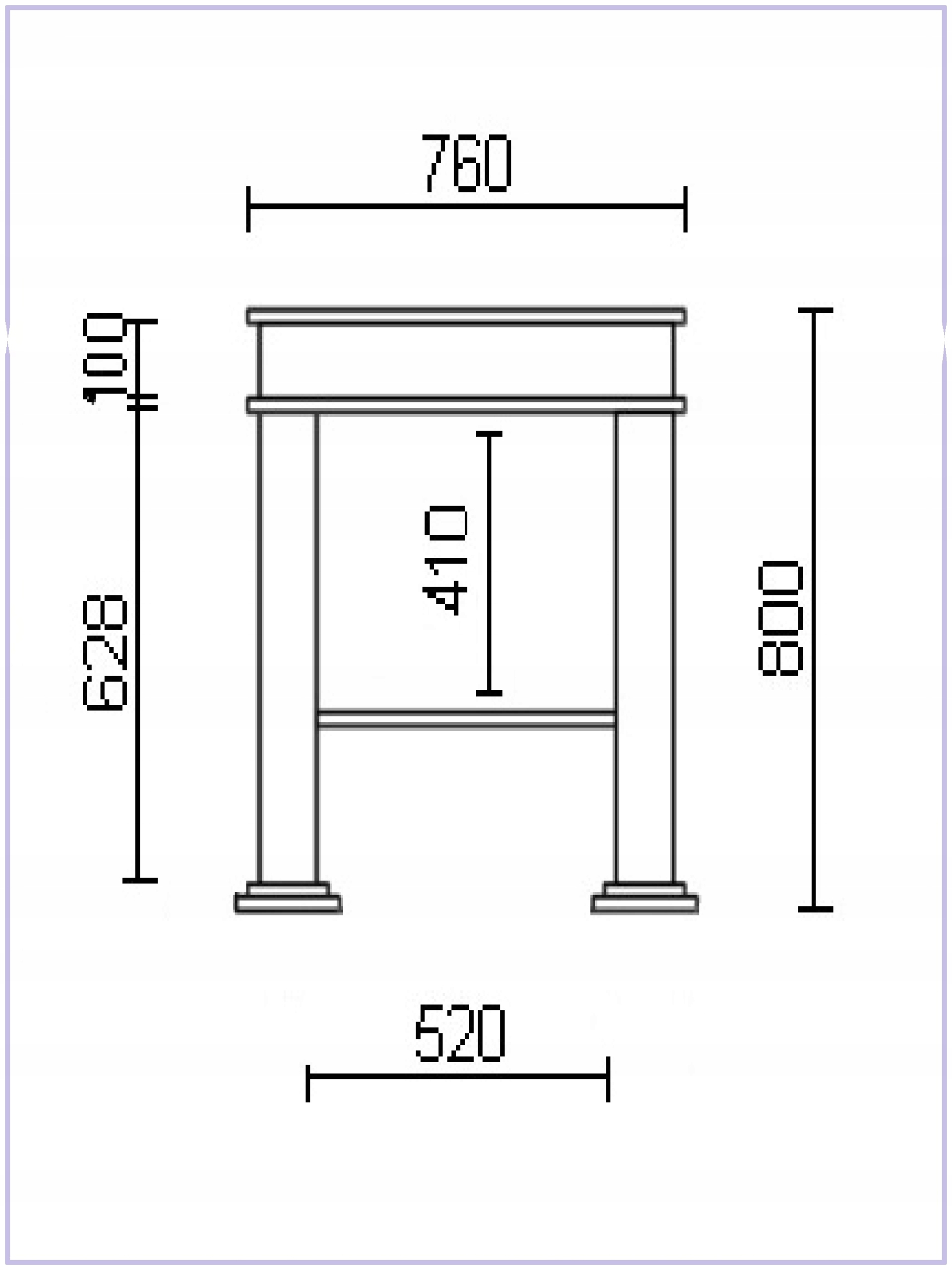 Внешние размеры до 800 мм в высоту, основание 800 мм в ширину, верхний стол шириной до 760 мм и 140 мм подробно.