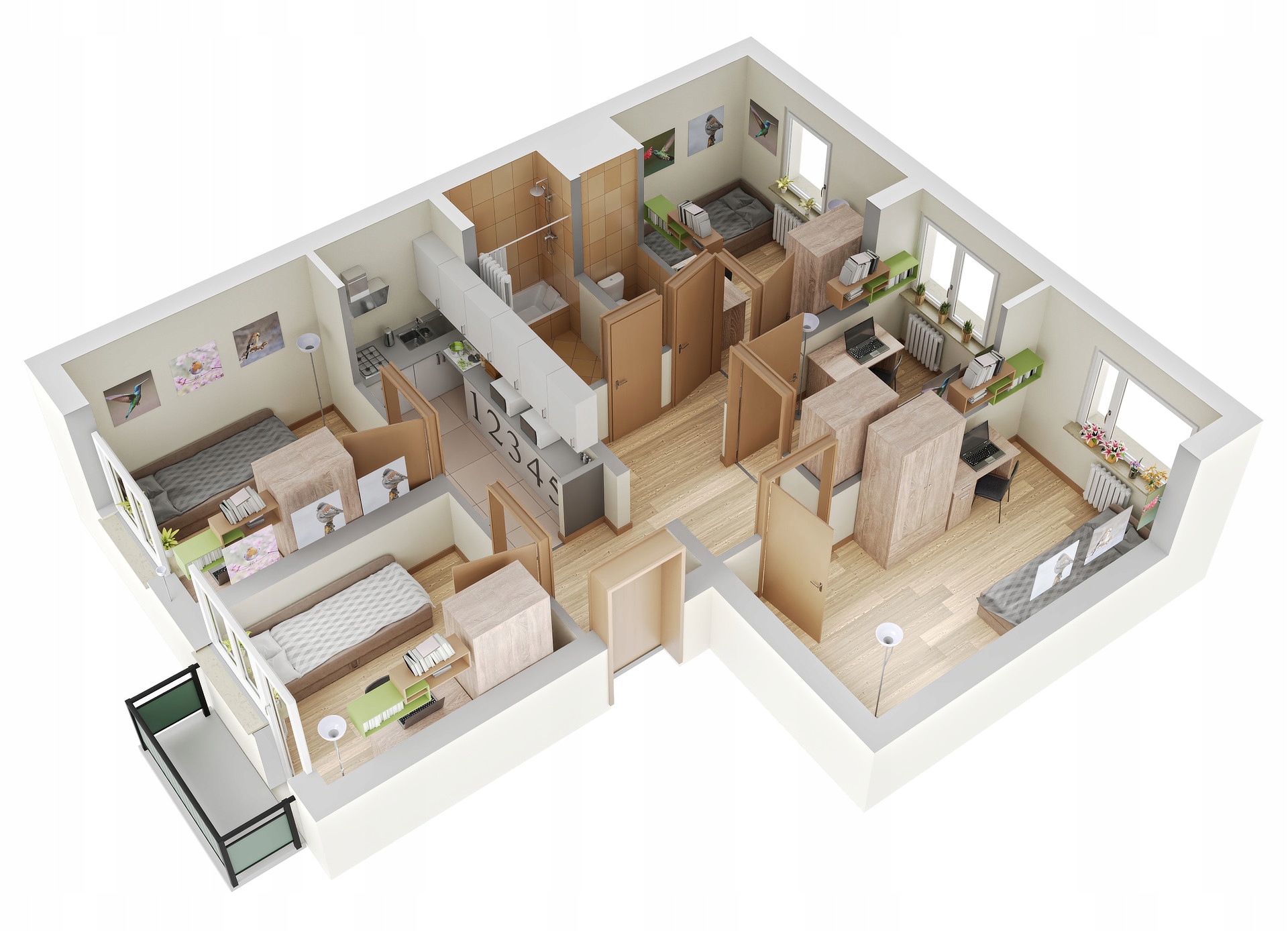 Wizualizacja wnętrza rzut z góry 3D - metraż 80m²