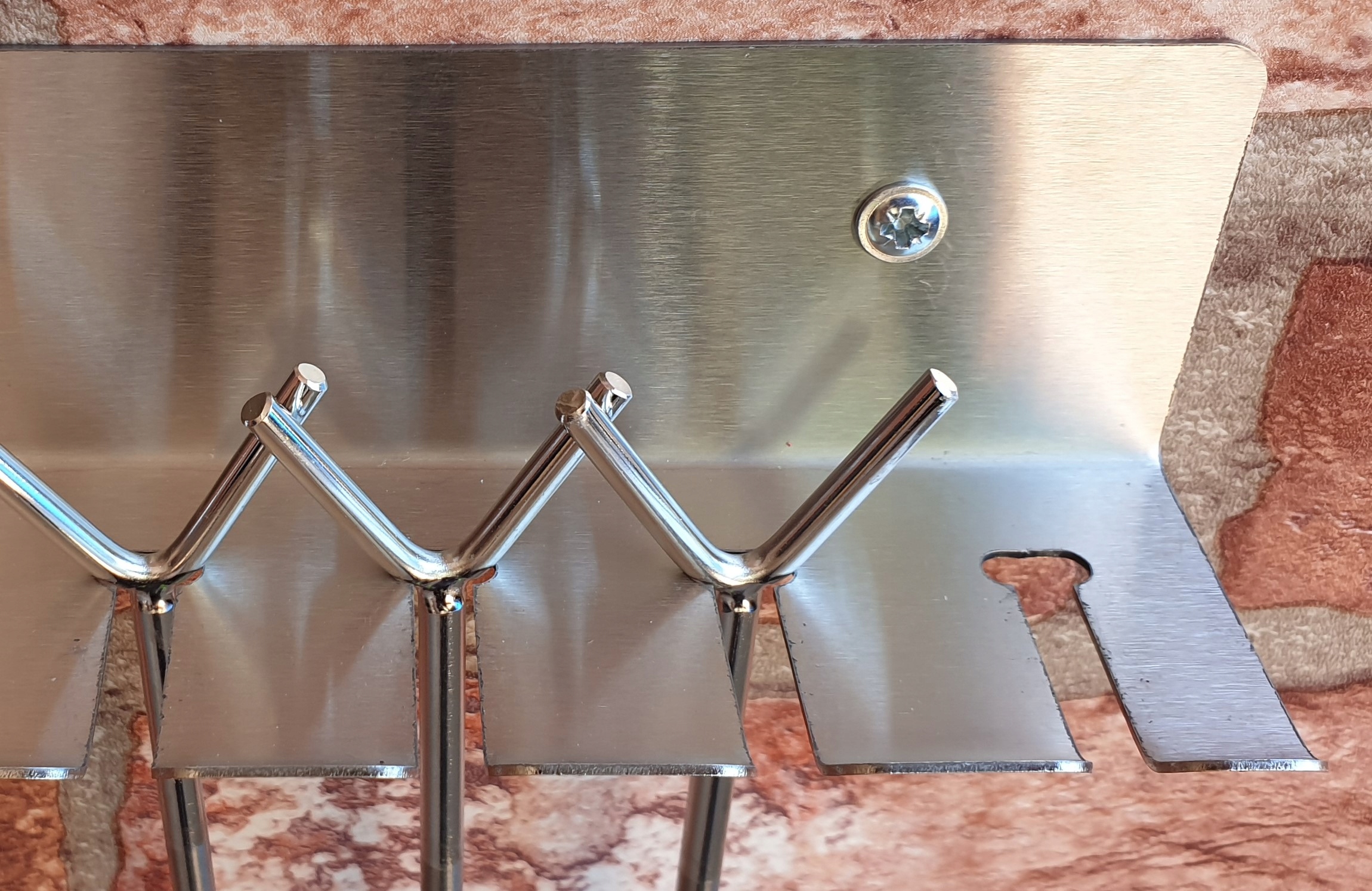 В комплект входят дюбели диаметром 8 с винтами из нержавеющей стали. Для непосредственного крепления держателя к деревянной стене, например, в беседке, можно использовать шурупы.