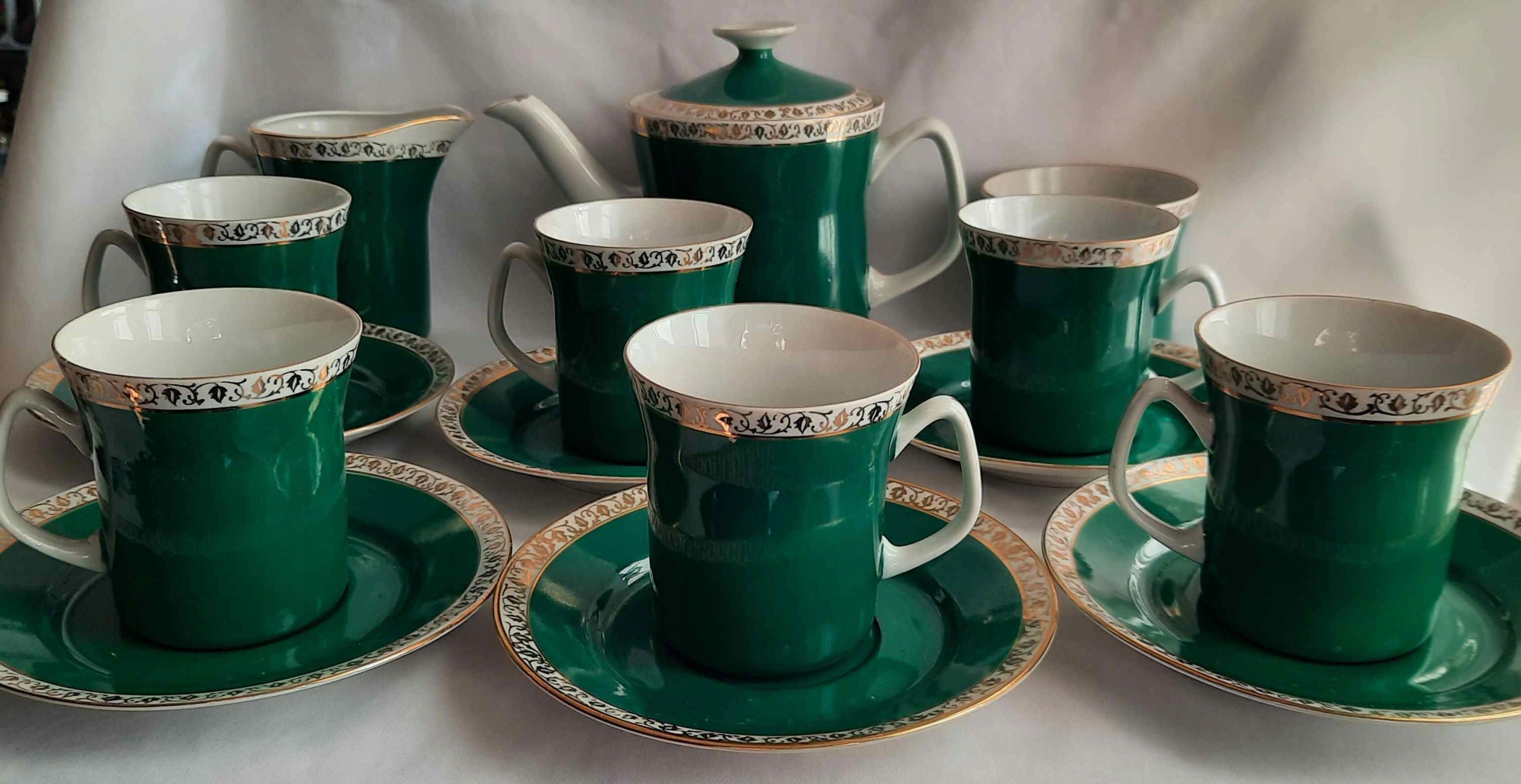 WŁOCŁAWEK ZIELONY SERWIS KAWOWY NEW LOOK PRL 5 OSÓB