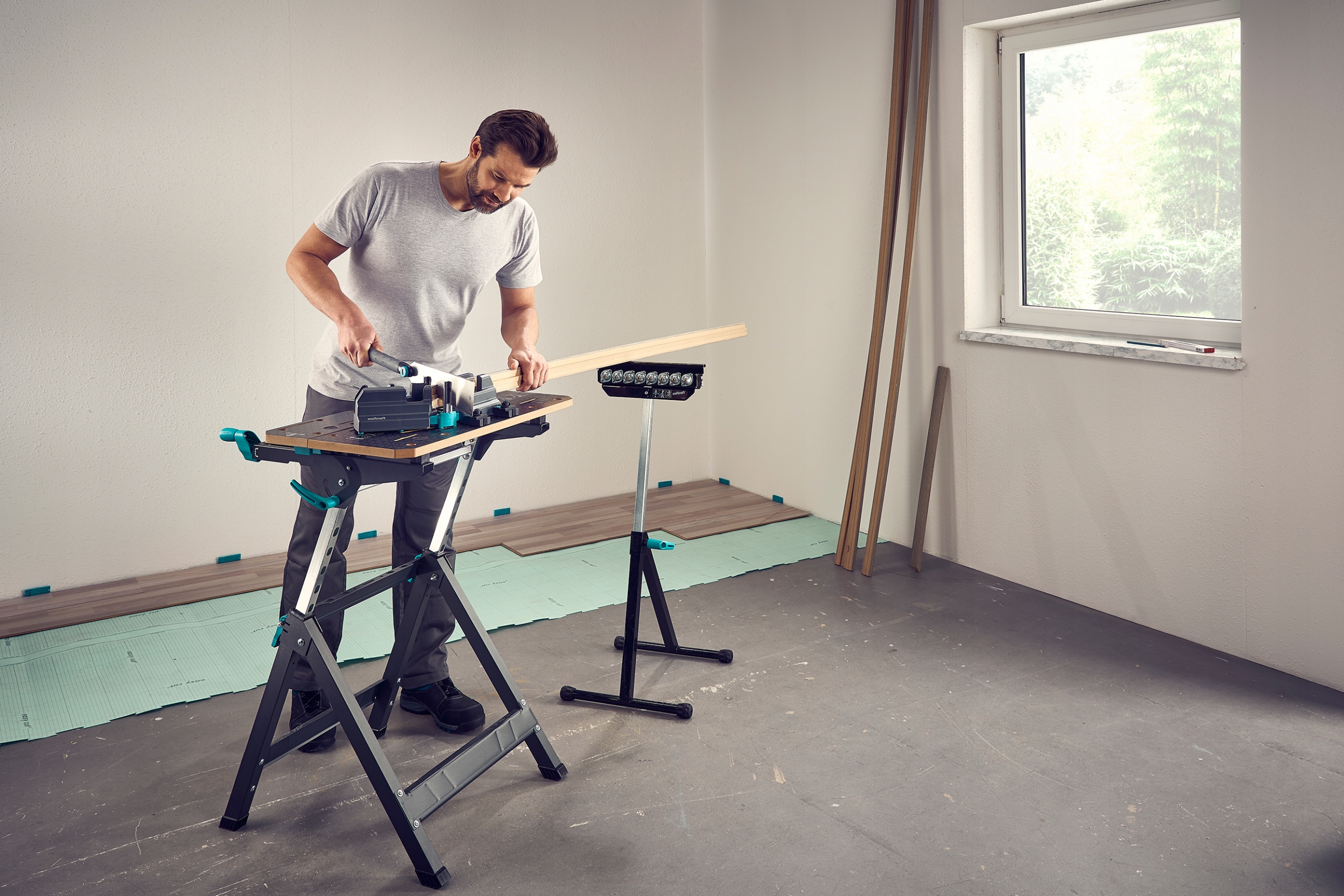 WOLFCRAFT Многофункциональный стенд для мастерской, роликовая опора 3в1 6102300