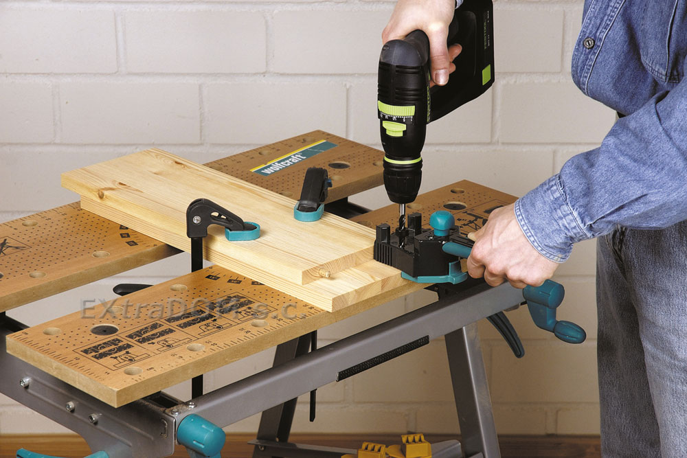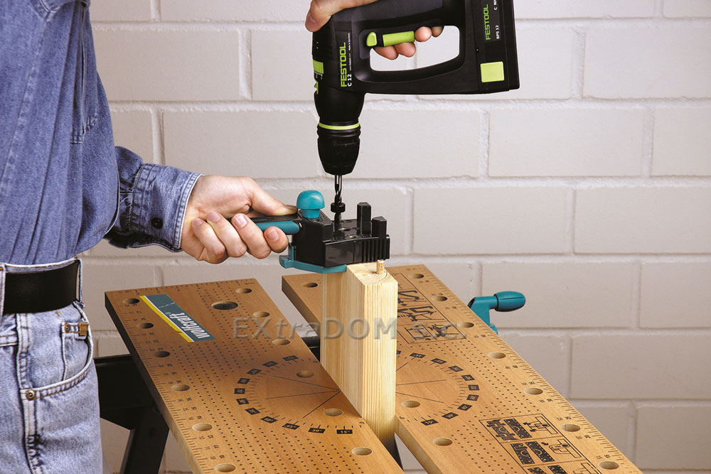 Универсальное дюбельное устройство от Wolfcraft. Качественный инструмент, полезный для столярных работ: изготовления и ремонта шкафов, полок и встроенных шкафов. Позволяет получить незаметное и прочное соединение деревянных элементов.