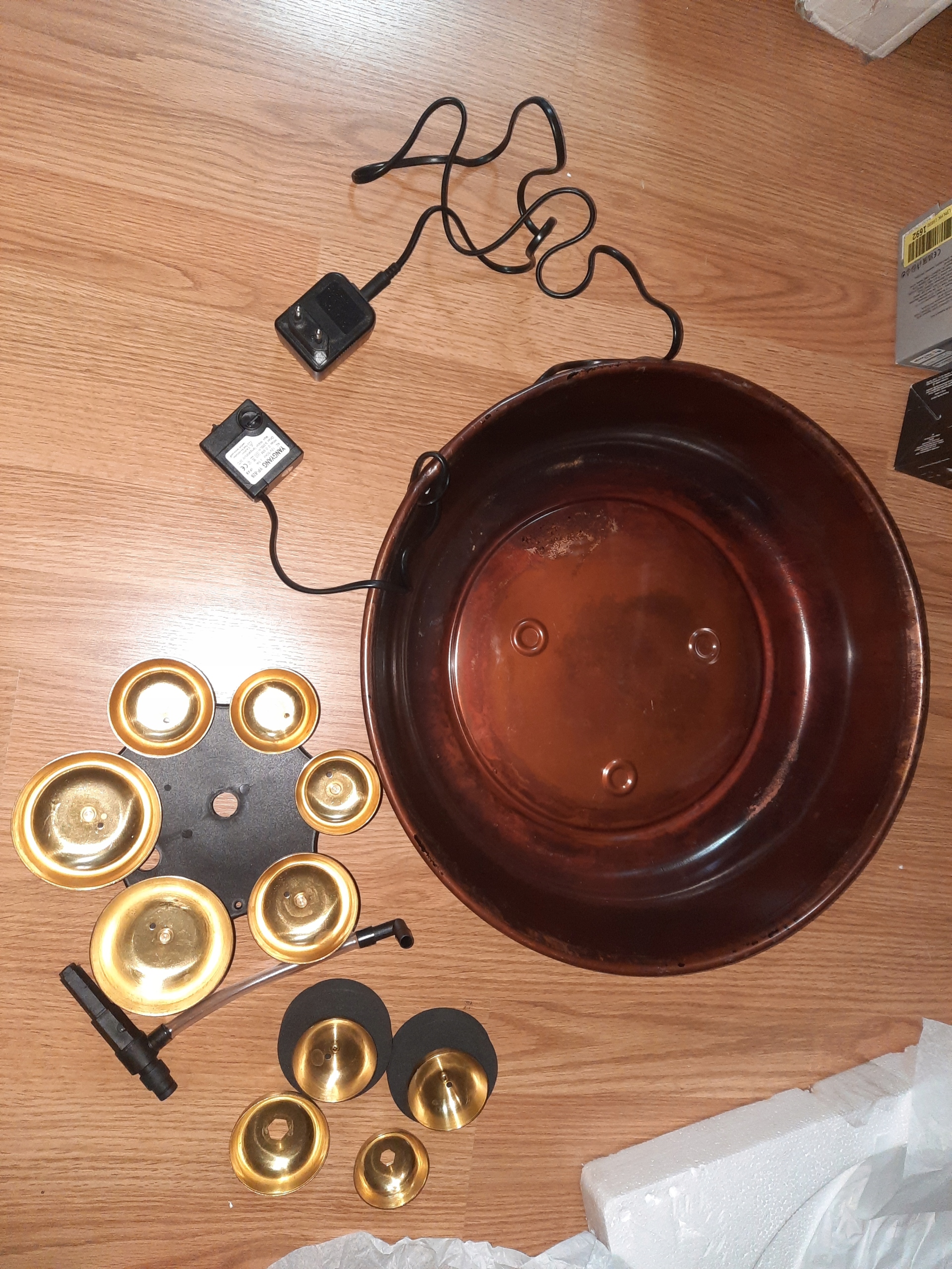- Изготовлен из прочных материалов — это Фонтан с водяным колоколом имеет смелый дизайн и состоит из медной чаши с 8 полированными латунными колоколами и насосом непрерывного действия.