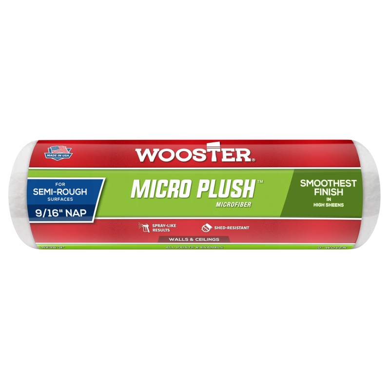 Малярные валики серии Wooster Micro Plush™ были разработаны для получения исключительно гладкой поверхности, сравнимой с эффектом напыления. Благодаря использованию белой микрофибры эти валики характеризуются высокой впитываемостью и равномерным нанесением краски, что обеспечивает равномерное покрытие поверхности без полос и брызг. Подходит для всех типов красок, лаков и эмалей.