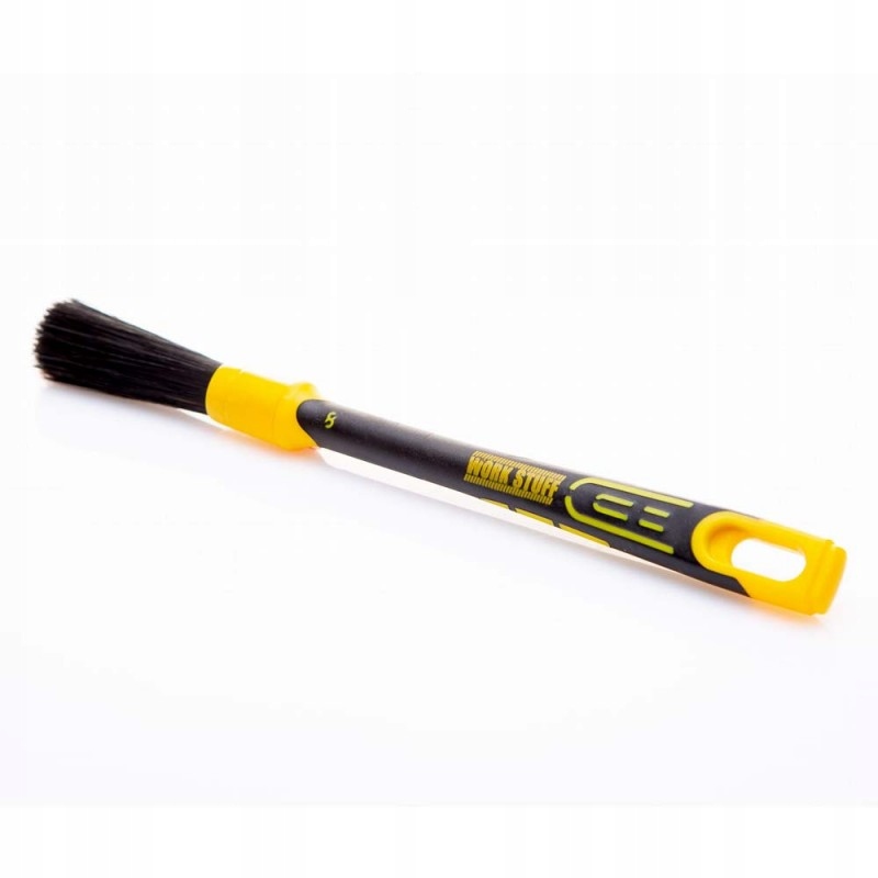 Кисть с высокой очищающей способностью. Идеально подходит для очистки колесных дисков, порогов, ниш и моторного отсека. Его можно с успехом использовать при работе внутри автомобиля при сильных загрязнениях, поскольку он прекрасно удаляет сильные загрязнения. Ручка щетки изготовлена из резинового материала. Щетина из синтетического материала. Резиновая ручка лучше подходит для чистки полостей, поскольку снижает риск сколов краски. Его нельзя использовать для очистки подверженных царапинам элементов, таких как кузов, элементы фортепиано, обода фортепиано и черный глянец.