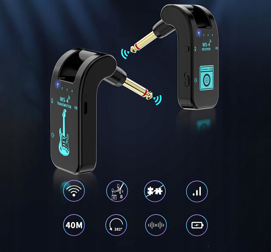 WS-4 Беспроводная гитарная приемник для баса с электрогитарой, черной