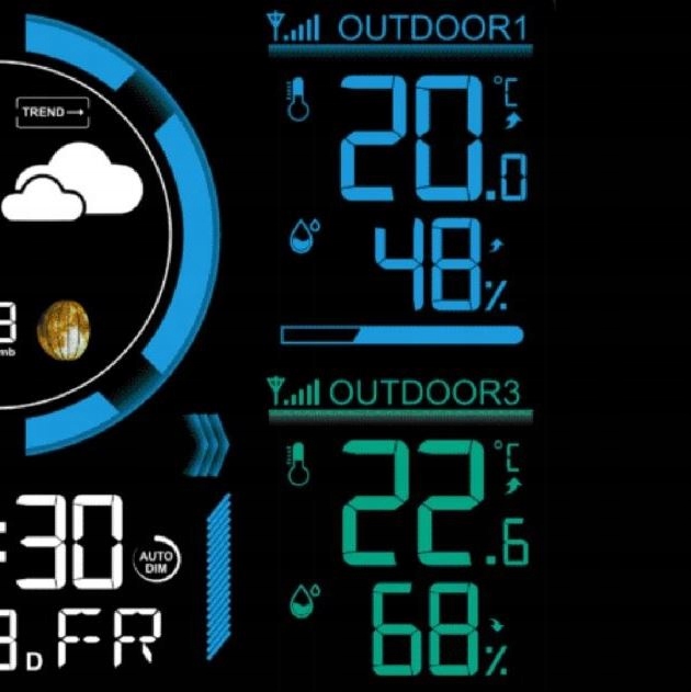 На ЖК-экране также имеются часы, которые могут отображать текущее время как в 12-часовом, так и в 24-часовом формате. Это позволяет станции выполнять функции полезных часов. Рядом с часами также есть календарь , который сообщит вам, какой сейчас день месяца и какой день недели. Названия дней недели доступны на семи языках (DE, EN, FR, IT, SP, DU и DA) и могут быть изменены при настройке календаря.
