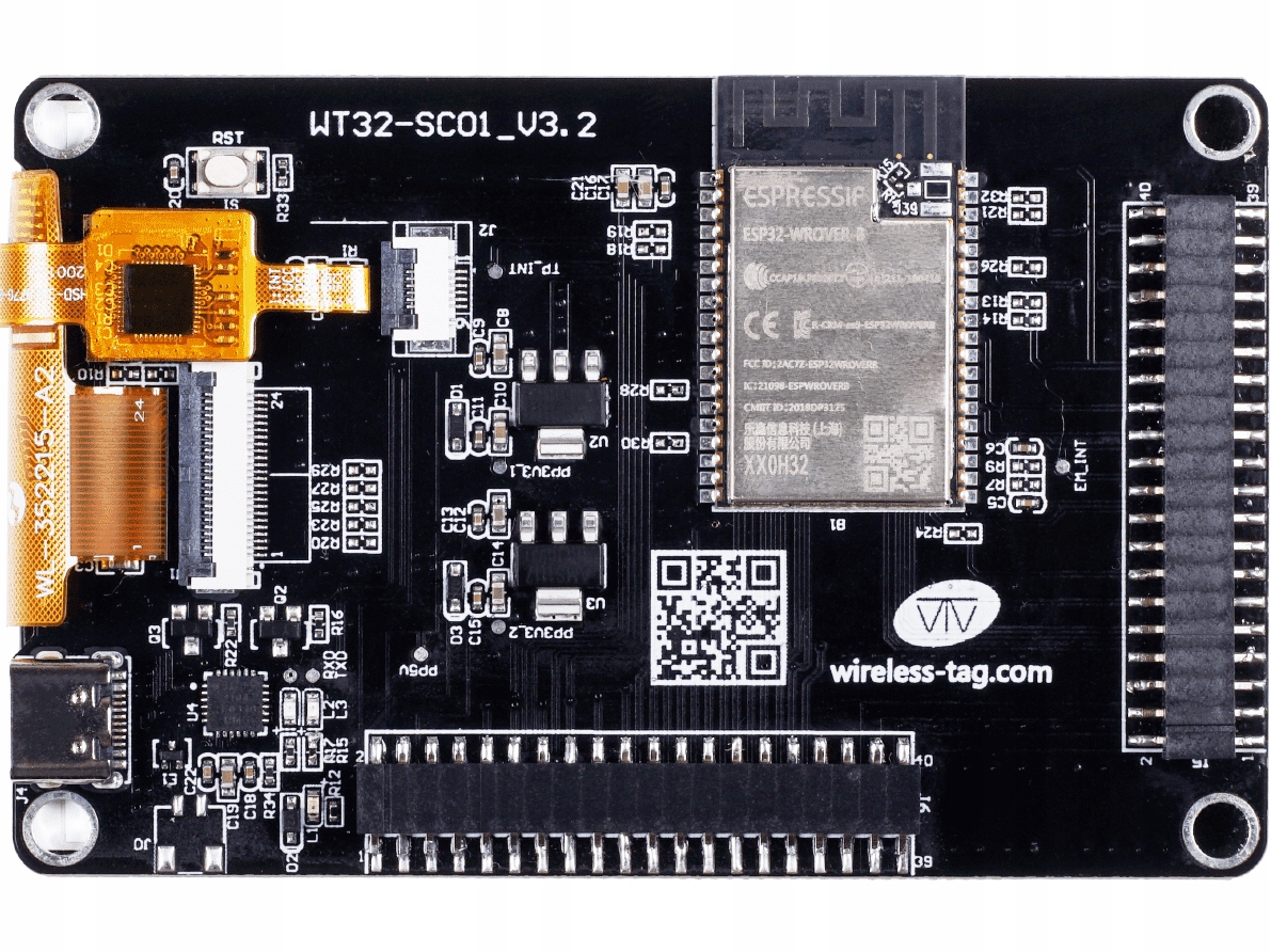 На плате разработки WT32-SC01 используется модуль ESP32-WROVER-B, который представляет собой модуль MCU общего назначения с Wi-Fi, Bluetooth, 16 МБ SPI Flash и 8 МБ PSRAM.