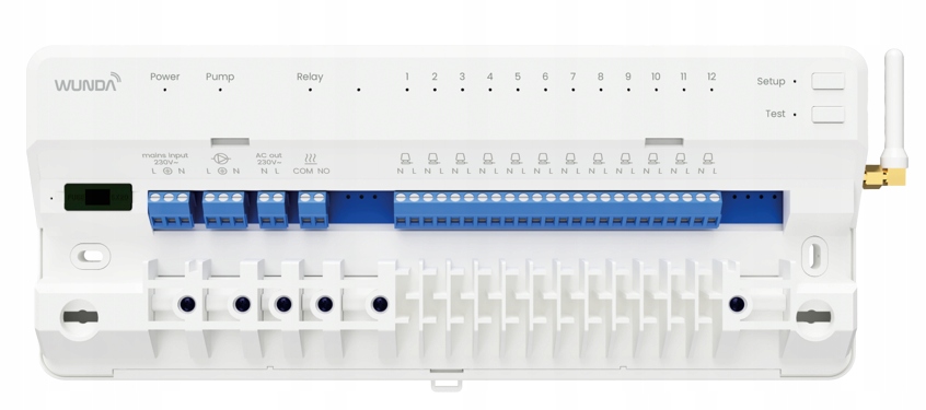 Планка управления работает с распределителем – автоматически открывает/закрывает исполнительные механизмы, контролирующие поток в контурах теплого пола. Лента Wunda Smart позволяет управлять 12 зонами обогрева одновременно. Мы можем подключить к нему 24 исполнительных устройства, управлять циркуляционным насосом и регулировать работу отопительного прибора. Полоска автоматически взаимодействует с термостатом для поддержания заданной температуры в каждой зоне (помещении). Дополнительно полоска позволяет контролировать работу 3D клапана и источника тепла.