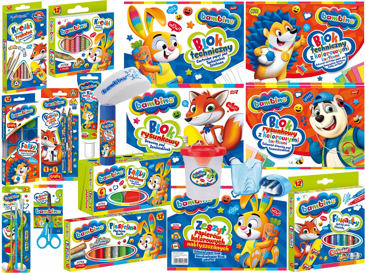 Wyprawka szkolna BAMBINO zestaw XXL kredki farby plastelina długopis