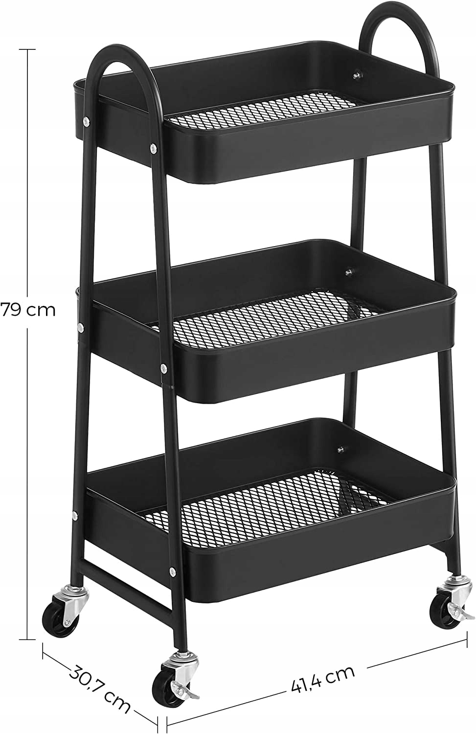 - Вы можете на нее положиться: это Прочная кухонная тележка заслуживает вашего доверия. Три полки прочно опираются на стальные трубы, а каждая корзина выдерживает вес до 10 кг. Эта тележка прослужит долго