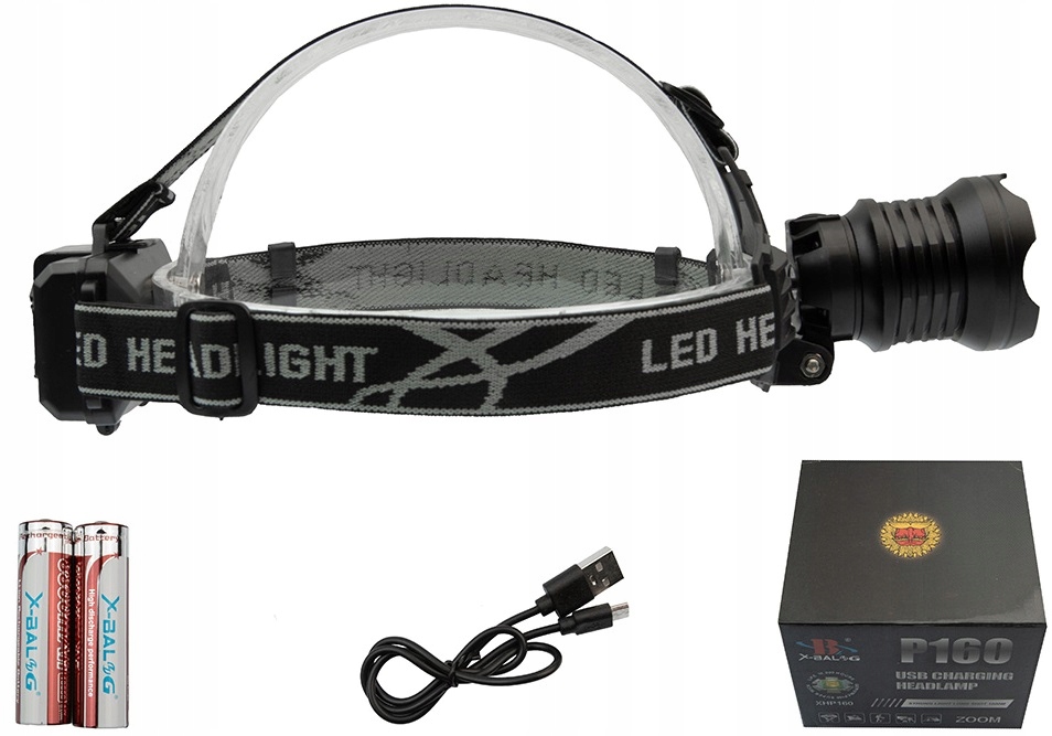 Очень сильный передний фонарик X-Balog BL-8090-2-160 LCZ-035 H1> + Zoom + 2x батарея 18650 + зарядное устройство + заднее лампа h2> Новая 2024 h2>