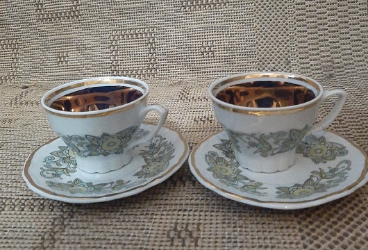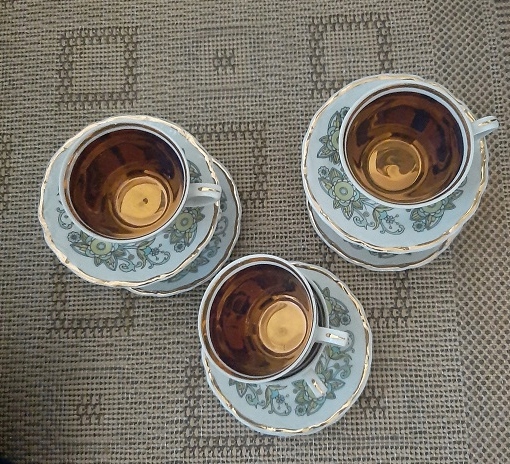 X6 FILIŻANKA x6 TALERZYK złocenia malutkie pamiątka PRL BOGUCICE /aa