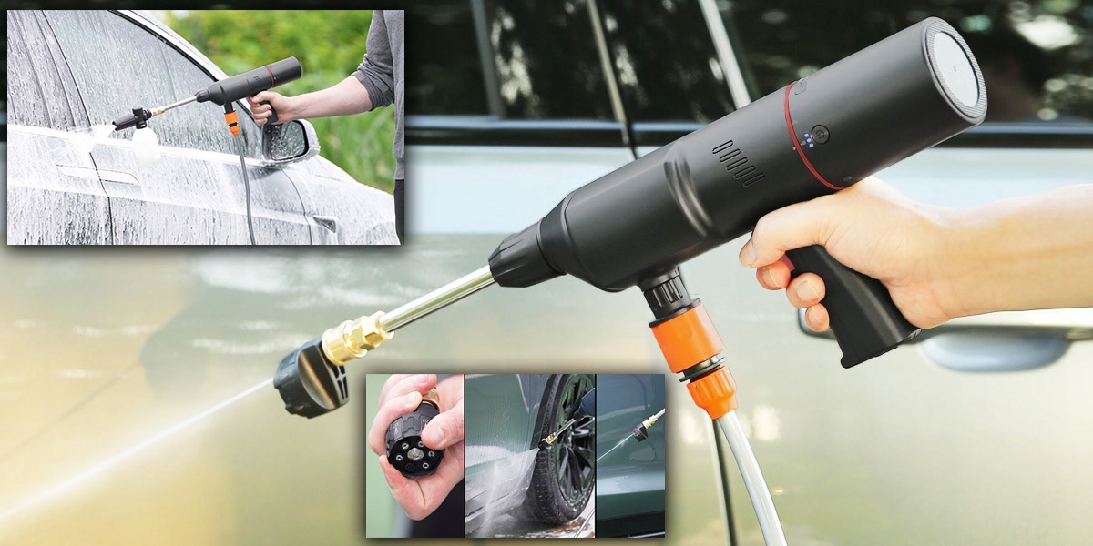 - Многофункциональное устройство позволит вам накачать шины, помыть автомобиль и пропылесосить его салон.