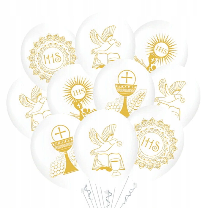 - 10 × White latex balloon with communion print