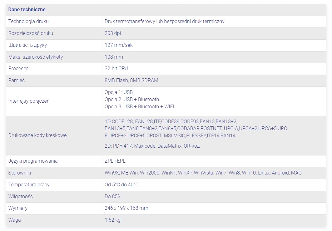 ✔️ Принтер печатает на этикетках ✔️ >шириной до 108 мм, максимальная ширина печати 104 мм. Скорость печати – 127 мм/с. Стандартное разрешение печати 203 точки на дюйм (8 точек/мм),