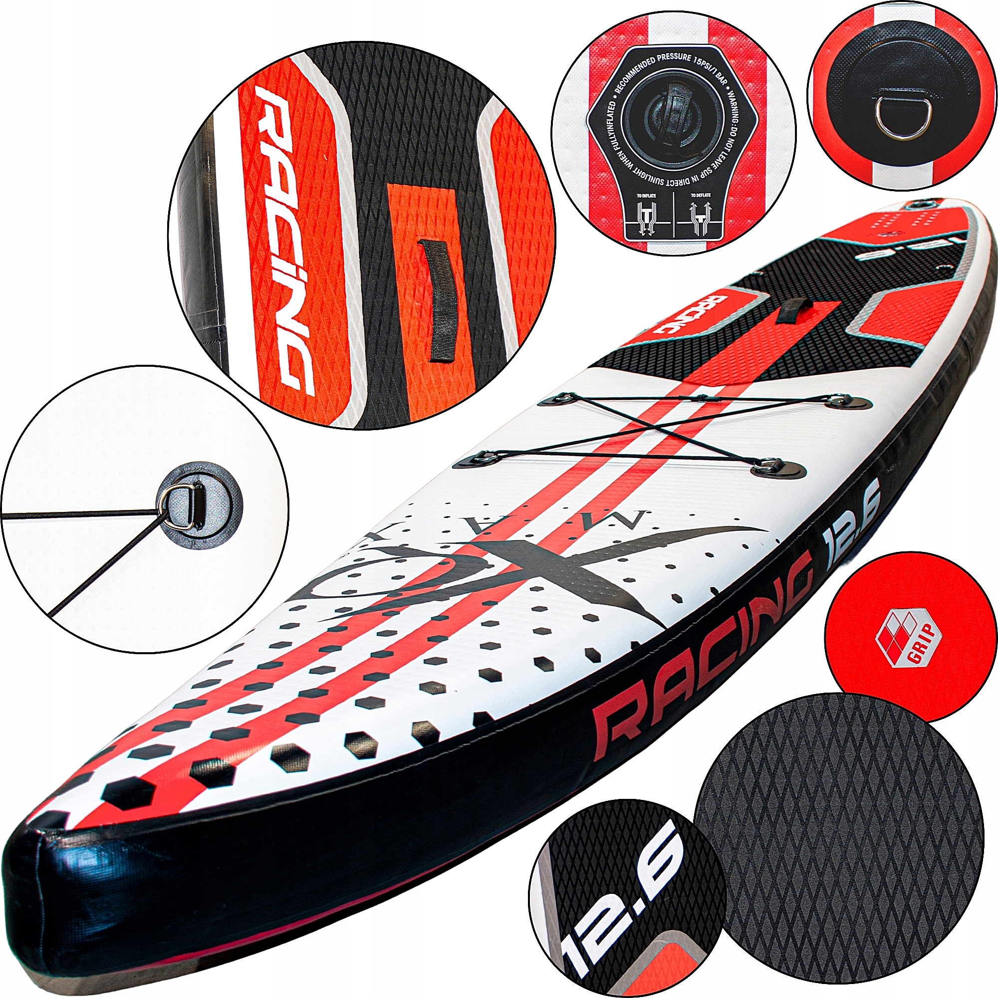 При накачивании до рекомендуемого давления 15 PSI доска достигает твердости, сравнимой с классическим жестким SUP. Более высокое давление увеличивает стабильность, курс и безопасность. При этом конструкция остается легкой и удобной для переноски.