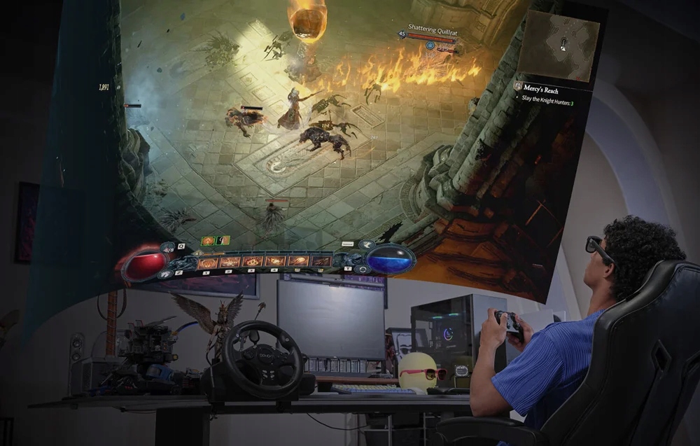 Хотите ли вы повысить свою продуктивность, погрузиться в мир игр или насладиться фильмами кинематографического качества, XREAL Air 2 Pro — отличный выбор. Эти очки дополненной реальности оснащены большим виртуальным экраном, который можно взять с собой куда угодно. Они обеспечивают удобство, превосходящее традиционные мониторы и телевизоры.