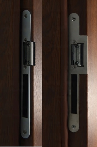 Slip (ведение языка блокировки) обеспечивает плавную работу языка блокировки зажима, защищая кадр от разрушения. Это также предотвращает язык зажима зажима в пространство между Solepatrodrip и рамой, что может привести к блокированию двери. Слипать, интегрированное с солнеодевой, а также слайд, используемое в сцепной пластине, является идеальным решением для невигированного (не -фельв) и узких дверных рамков.