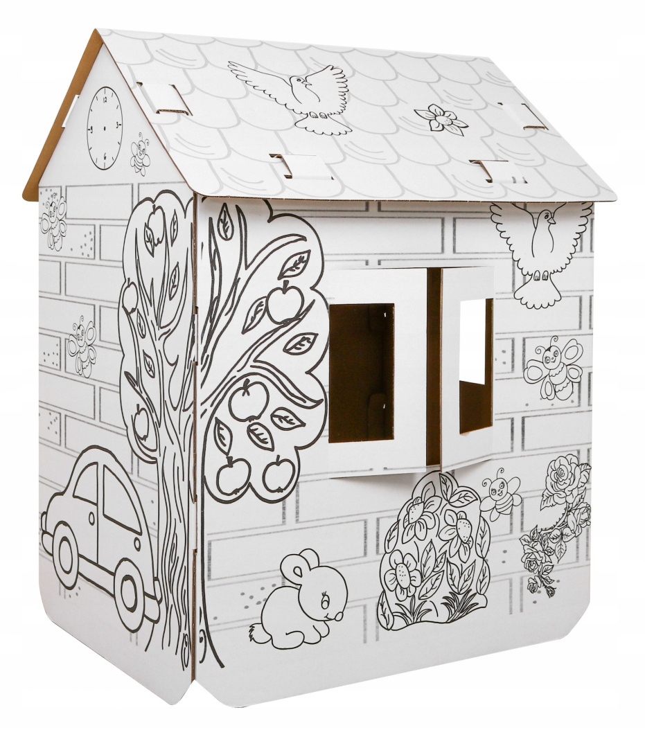 Описание Картонный домик для рисования Картонный домик – предложение для детей от 3 лет. Игрушка имеет подвижные элементы, такие как открывающиеся окна и двери. Играя с этим домиком, ваш ребенок будет стимулировать свое воображение, развивать творческие способности и художественные навыки. После сборки домик можно покрасить (в комплект не входят малярные принадлежности). В наличии варианты для девочки и мальчика. Размеры - дом после сборки ок. 98 см х 58 см х 77 см, - размеры упаковки ок. 98 см х 77 см х 3,5 см. Комплектация - домик для самостоятельной сборки