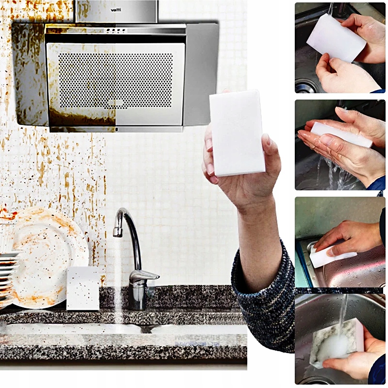 Волшебная губка действует как ластик для грязи. Для эффективного удаления грязи не нужны химикаты. Губка подходит для поверхностей, устойчивых к влаге и истиранию, ведь для эффективной работы волшебной губки ее необходимо слегка смочить, а загрязнения стереть ластиком, как карандаш.
