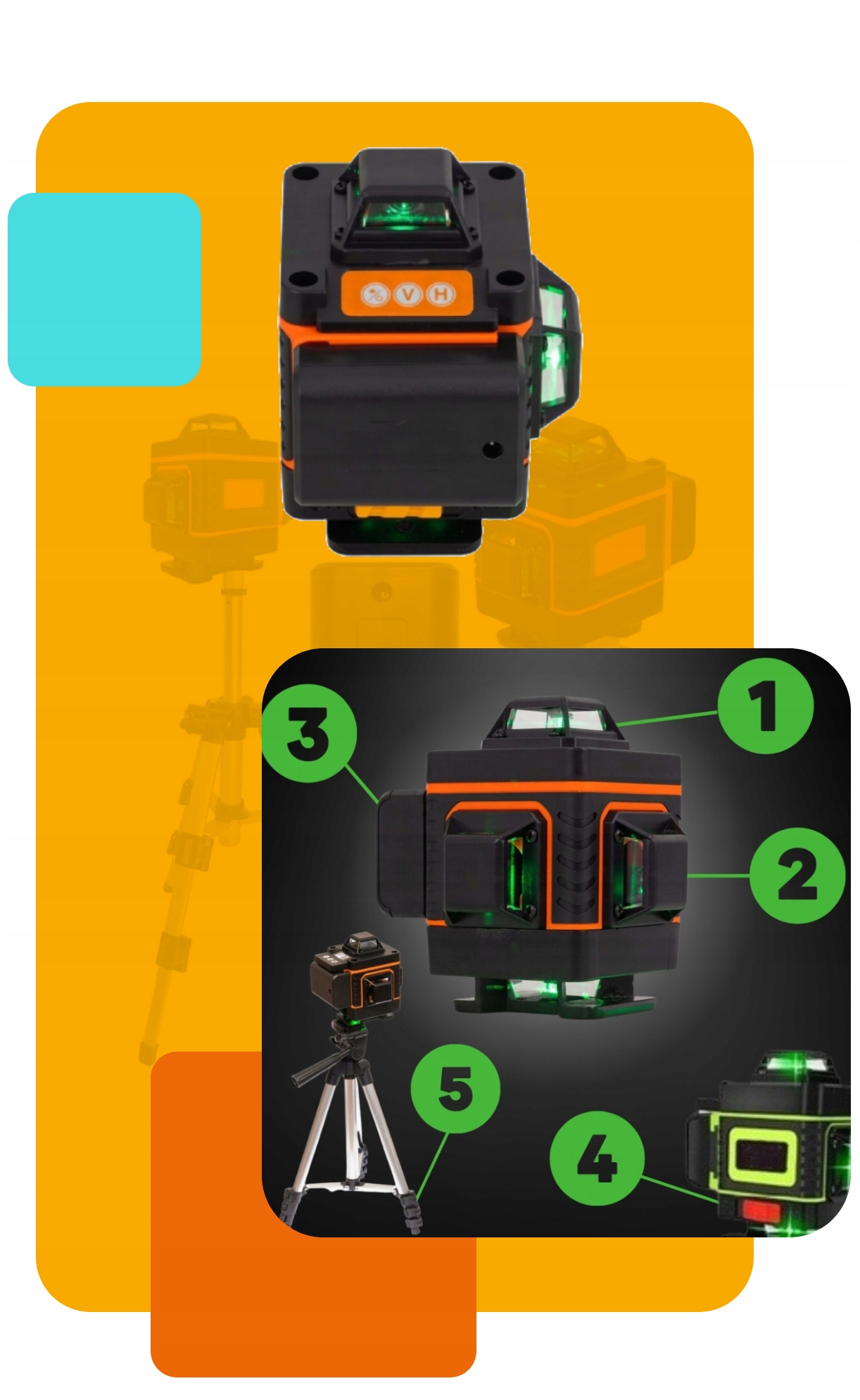 ➡️ 16 ЛИНИИ - лазерный уровень имеет 4 лазерных окна, каждое окно может запускать 4 лазерные линии, всего 16 лазерных линий