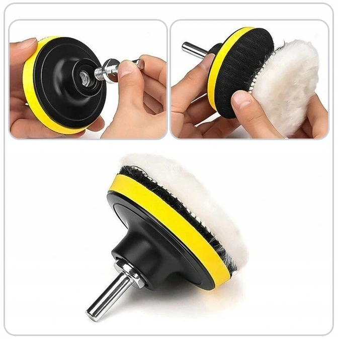 ➡️ Губки крепятся на липучке к входящему в комплект диску, который можно удобно закрепить в дрели, отвертке или полировальном устройстве.