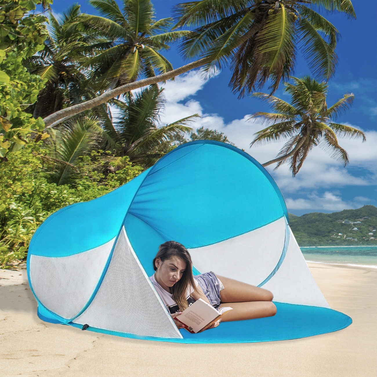 Пляжная палатка представляет собой идеальное сочетание зонтика и ширмы, предназначенных для защити нас от ветра и чрезмерного солнца. Однако пользоваться им удобнее, поскольку модель собирается самостоятельно всего за две секунды. Покрытие палатки обеспечивает отличную защиту от вредного УФ-излучения, а также просто дает тень в солнечный день. Также стоит отметить, что дно защищает нас от влаги и песка на пляже. ЛИППИ – полуоткрытая и легкая палатка. В футляре его диаметр всего 65 см, поэтому его легко транспортировать или переносить. Для его фиксации в комплект входят три колышка, благодаря которым его можно легко прикрепить к земле.