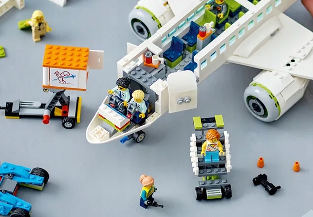 С этим набором вы сможете играть различные роли — от пилота до наземной команды и до пассажира. В набор входят 9 минифигурок и множество аксессуаров, таких как чемодан, фотоаппарат и рации, которые оживят любое приключение в аэропорту. После того, как веселье закончится, самолет будет красиво смотреться на полке!