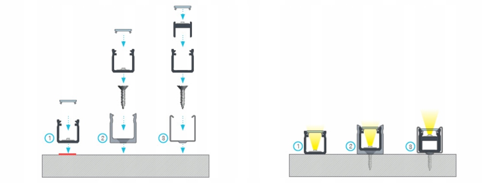 - Профиль может быть прикреплен к различным поверхностям , такими как стены, мебель или потолки, что делает его универсальным решением для различных проектов освещения