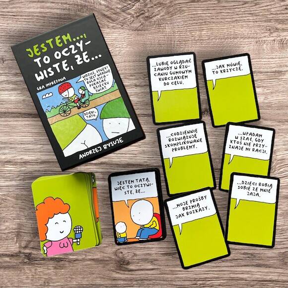 Я ... очевидно, что ... в этой забавной карточной игре вы сыграете разные роли и узнаете, какие комические ситуации могут произойти в повседневной жизни. Ваша цель - выбрать самую абсурдную и веселую комбинацию! Используйте свое воображение и чувство юмора, чтобы создать самые смешные сценарии! Сначала вам нужно подготовить! Теперь выберите самый молодой игрок, который начнет играть и откройте для себя одну карту предохранителя. Этот игрок выполняет функцию лектора и оценщика, и сам не лекций не читает его карты. Они выбирают лучший текст, а покрытая карта служит игроку, который оценивает. Он представляет карту в игру (опция, указанная для 3 игроков, выше 3 вы можете пропустить этот элемент)