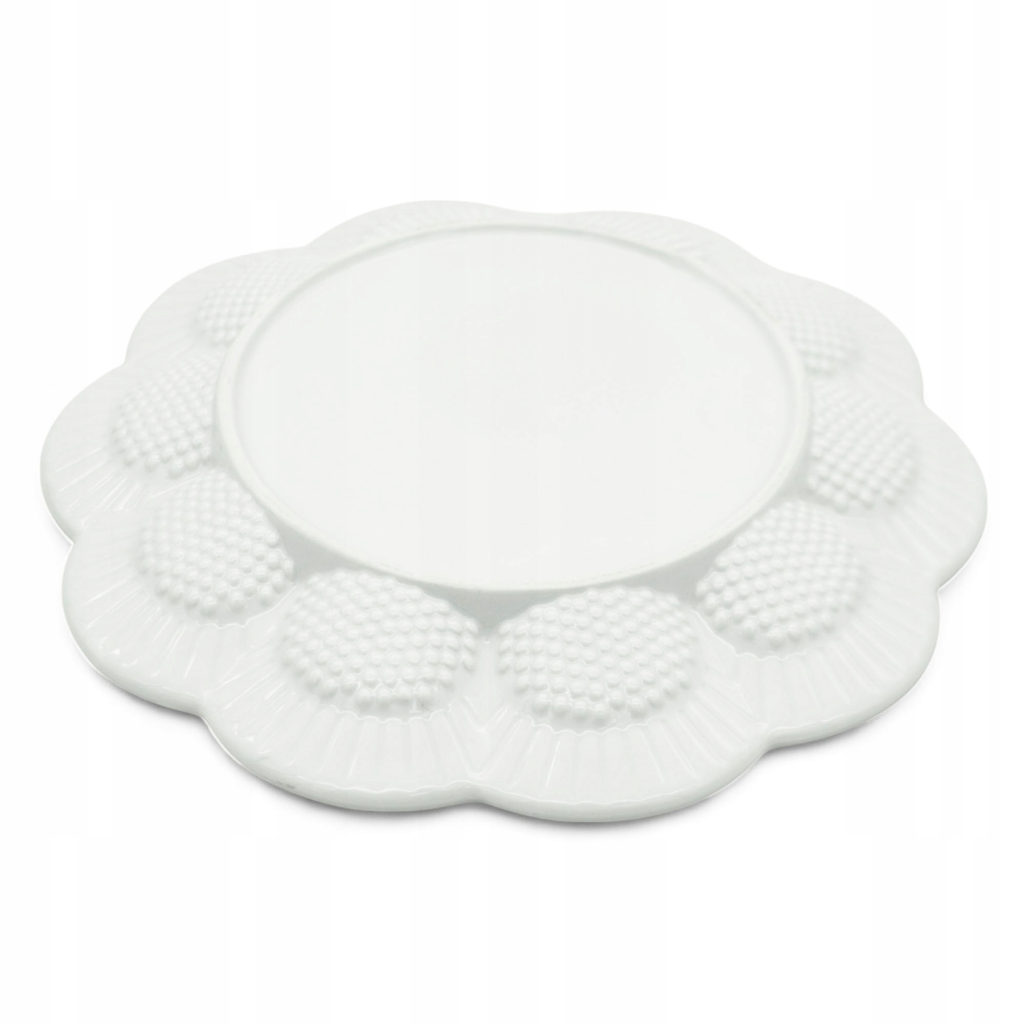 Пластина для яиц - это практическое и эстетическое сосуд для подачи приготовленных яиц, как твердых, так и фаршированных. Его плоская форма с полостями допускает стабильное размещение яиц, что облегчает их введение и предотвращает движение. Он сделан из фарфора, который делает его прочным и простым в чистке. Таблица