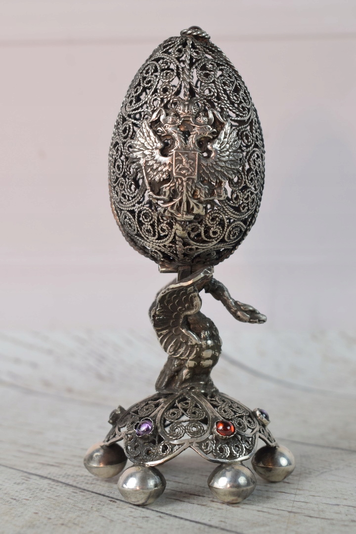 Серебряное открытое яйцо - открытие - царская Россия PR. 84 - Орел в отделении