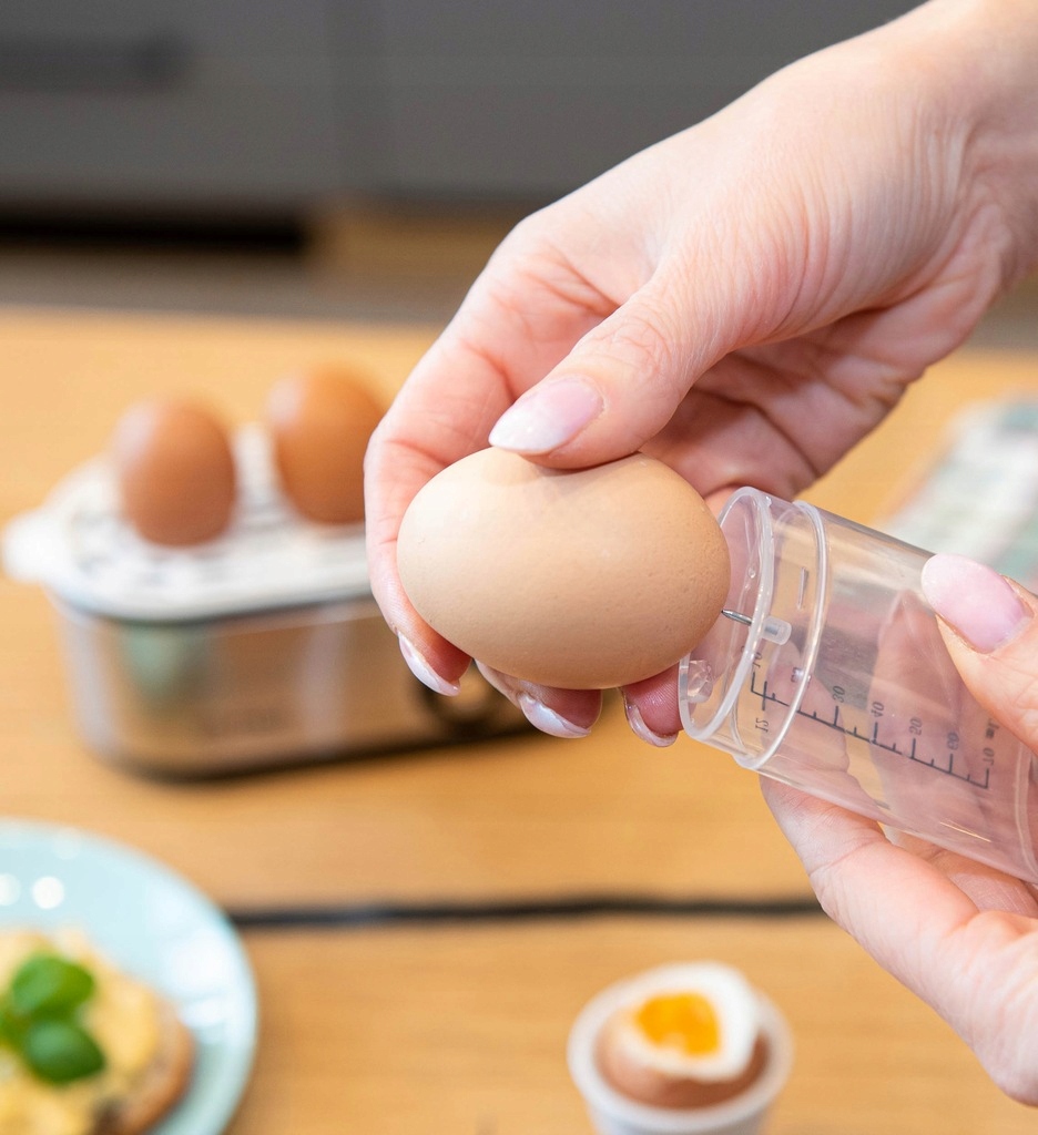 Для 3 яиц всмятку требуется 12 мл воды и время приготовления 6,25 минут, а для яиц, сваренных вкрутую, требуется 30 мл воды и время приготовления 12,5 минут.